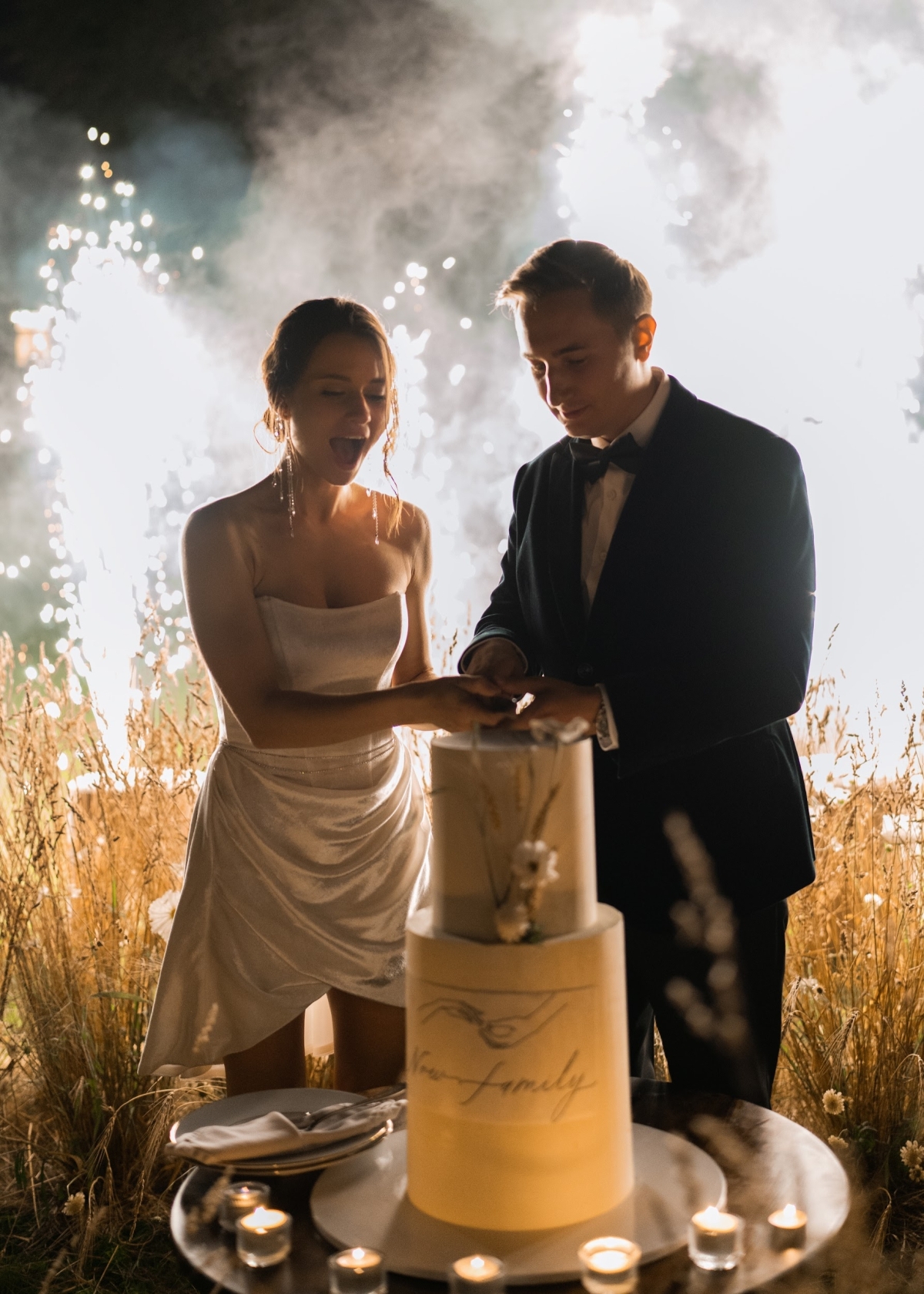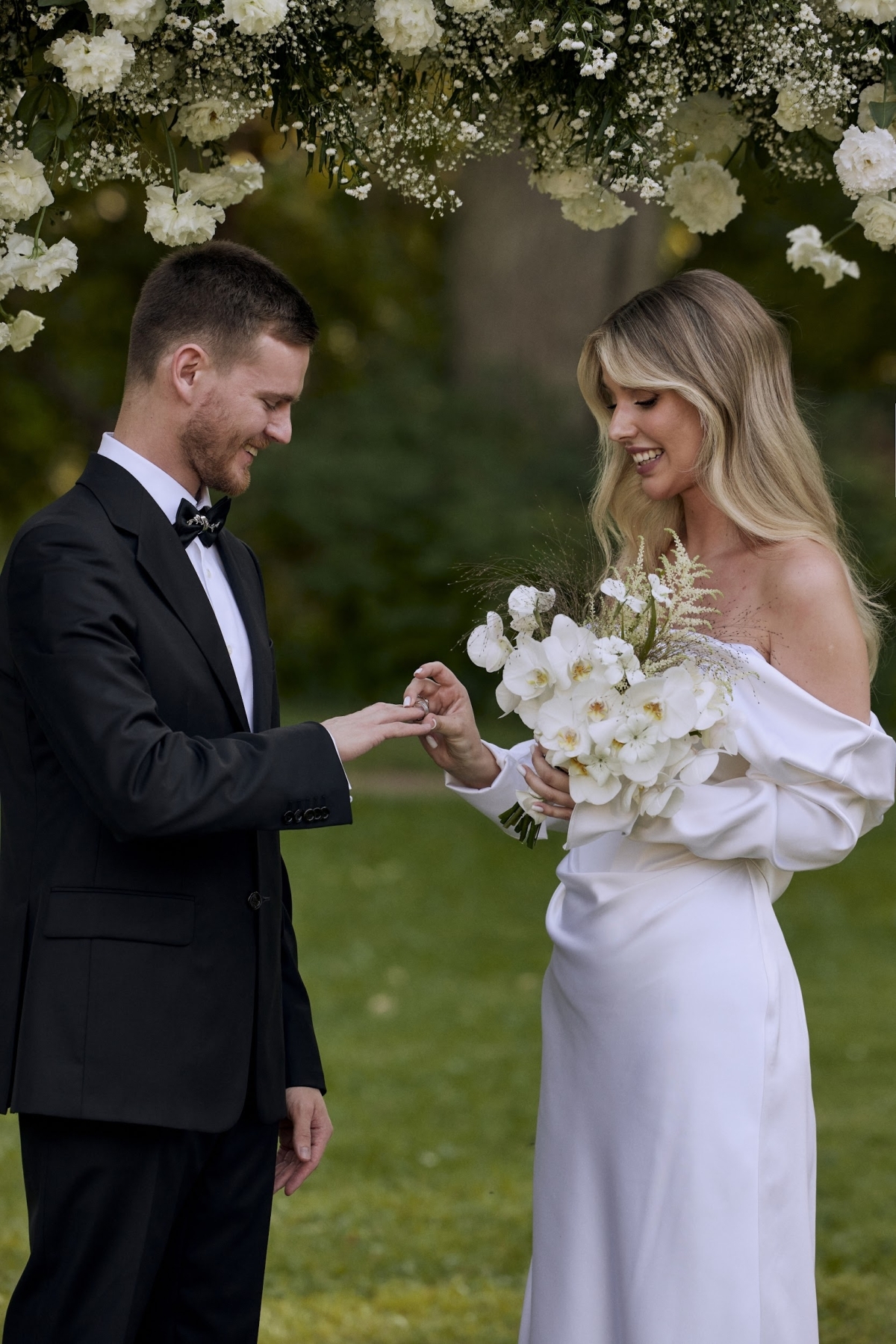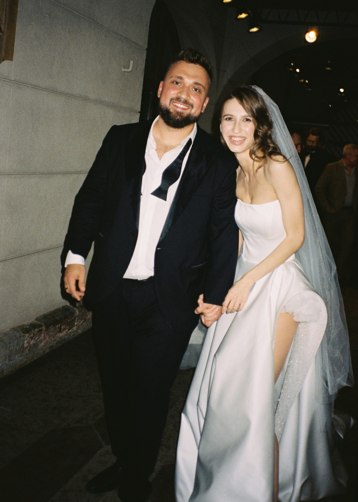 Из-за того, что наша регистрация была почти за 2 месяца до свадьбы, я очень боялась, что не будет тех искренних чувств, когда вы впервые говорите друг другу важные слова, и все будет немного наигранно. Но все было очень трогательно, и церемония получилась безупречной. Весь вечер мы правда веселились и отмечали как в первый раз))