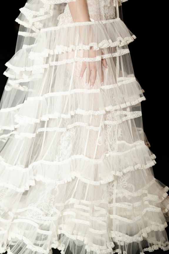 Мини-кринолины, кружевные чулки и корсеты. Новая свадебная коллекция Vivienne Westwood На Barcelona Bridal Fashion Week 2026
