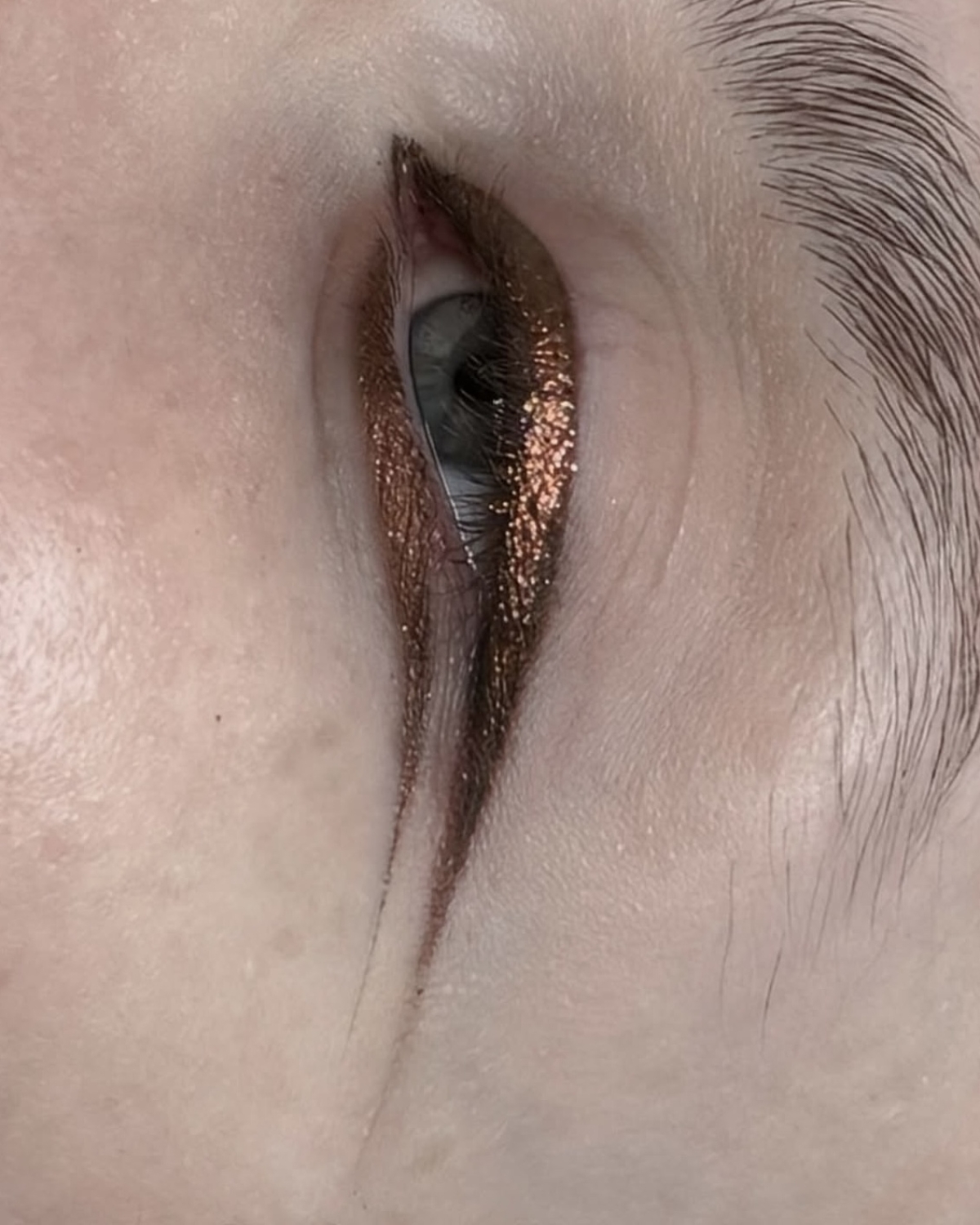 Мягкое прочтение готики в бьюти-образе — определенно свадебный тренд. Глубокие оттенки в палитре и нуарные техники нанесения макияжа все еще отсылают к модной зумерской эстетике и при этом не спорят с традиционным ви́дением невесты. А благодаря графичным стрелкам, темных смоки и контрастному контурингу губ образ становится драматичнее и смотрится в кадре более загадочно.