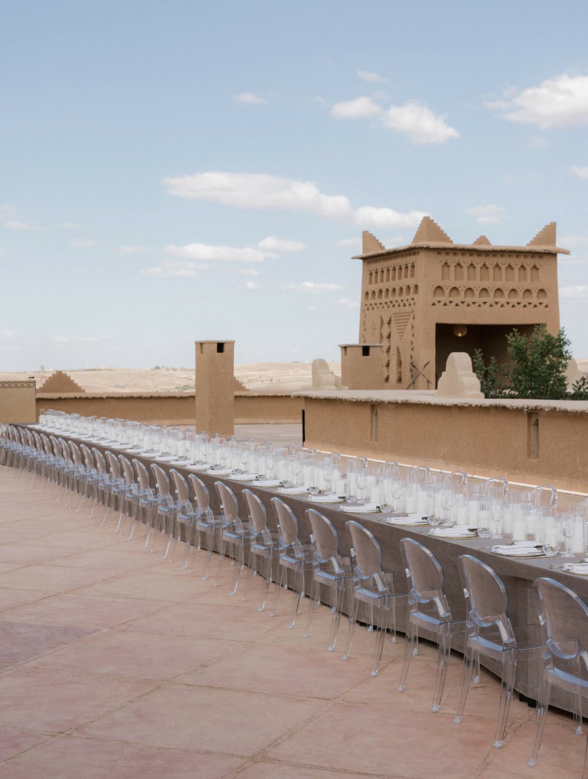 Как я уже упомянула, событий было много: помимо свадебного дня, была отдельная вилла с диджеем, где каждый вечер заканчивался приватной вечеринкой, афтепати в замке Kasbah D’if с ужином на крыше на закате и прощальное барбекю с просмотром SDE. Чтобы сохранить аутентичность каждого события, мы закупали детали на местных рынках, дорабатывали, красили и интегрировали в декор.