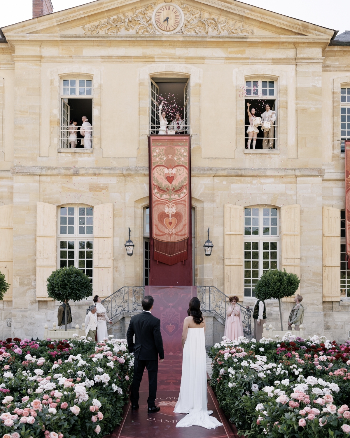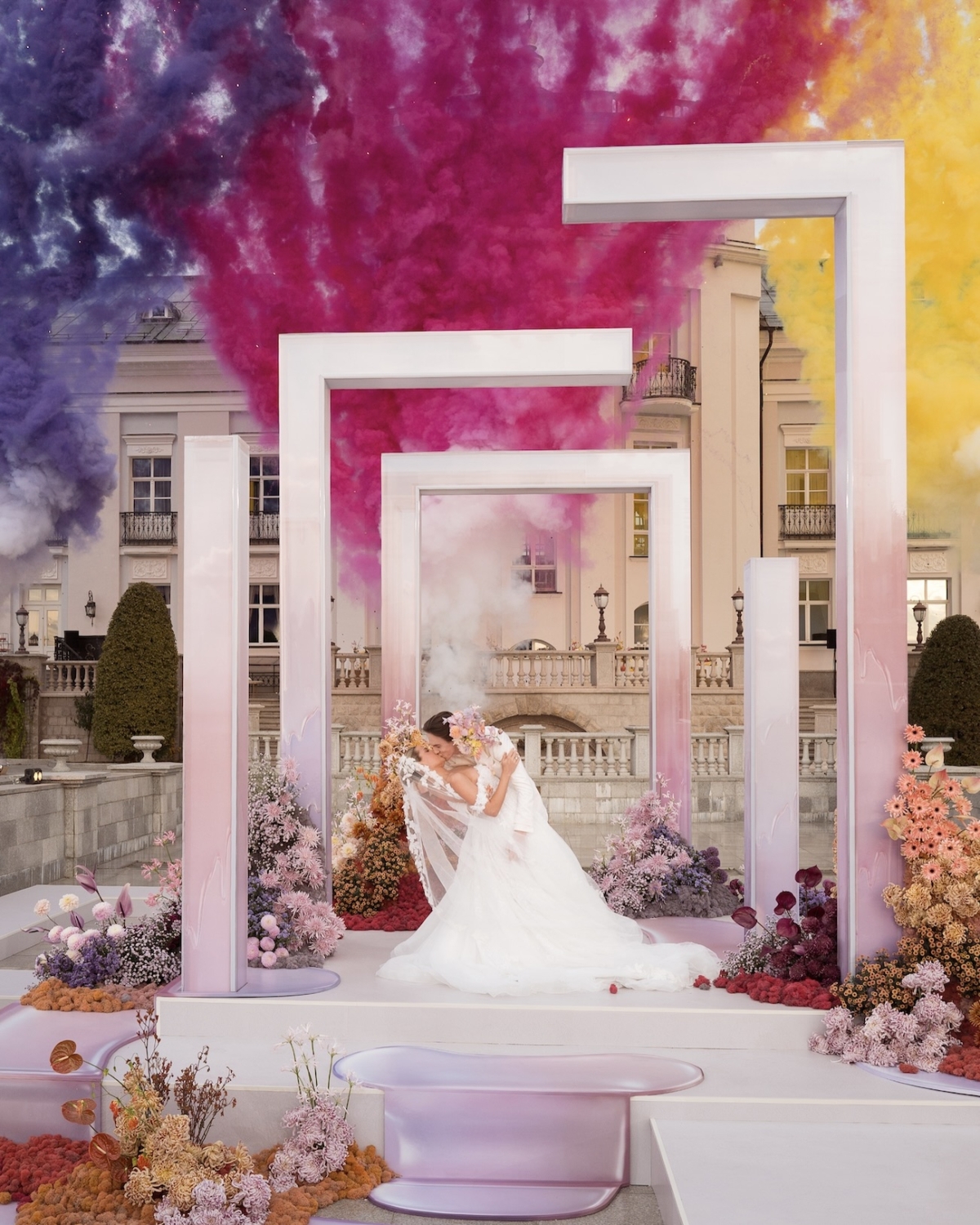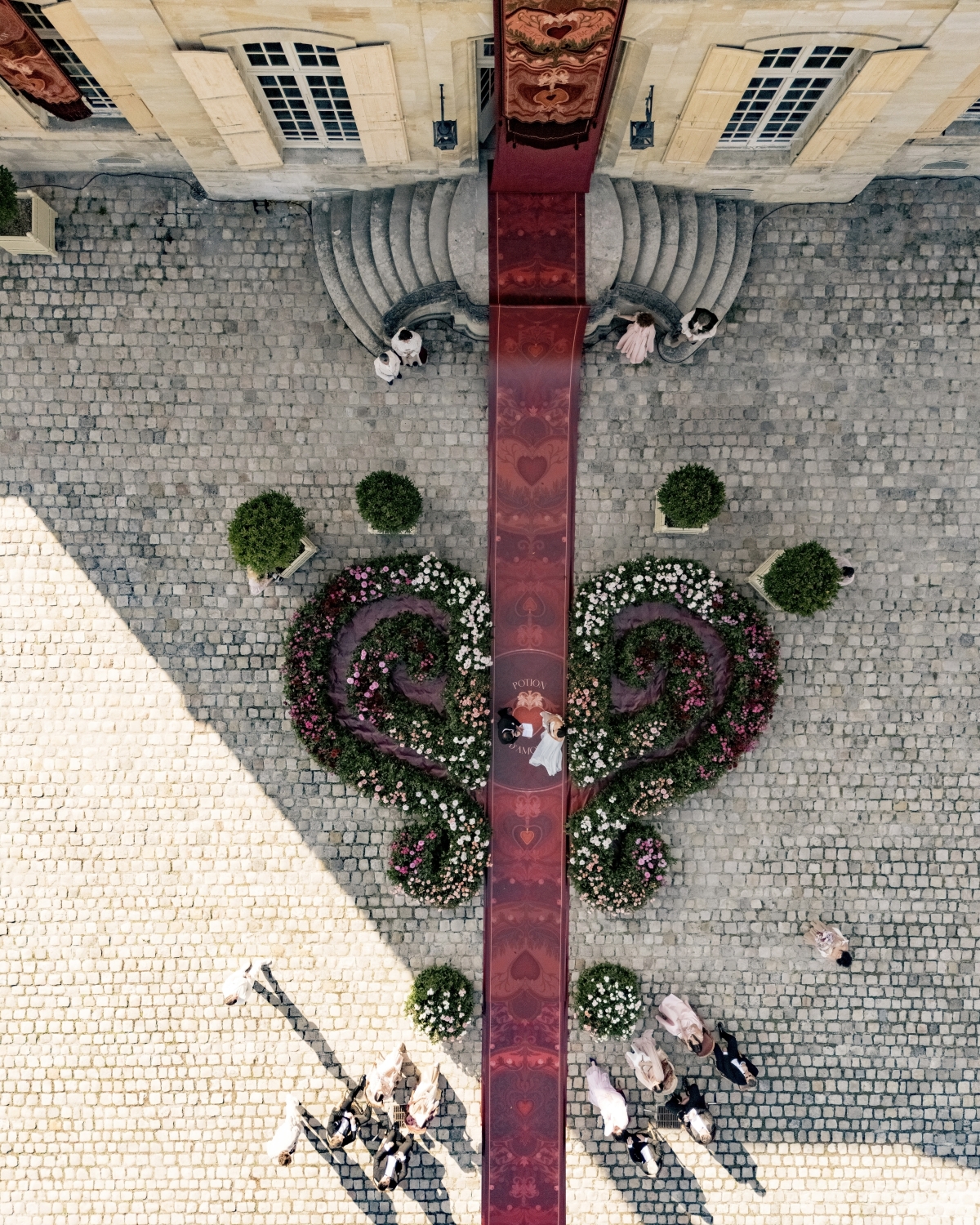 Далее — проект во Франции. С этой страной мы знакомы не понаслышке: мы уже реализовывали свадьбы и в Бордо, и в других регионах. С Chateau de Villette мы тоже уже работали в прошлом году — тогда проект получил резонанс. Поэтому в этот раз мы возвращались на площадку, которую уже изучили, и это сильно облегчило процесс: у нас были планы, чертежи и понимание логистики. В таких условиях можно начинать сразу с идеи, не тратя время на дополнительные инспекции.