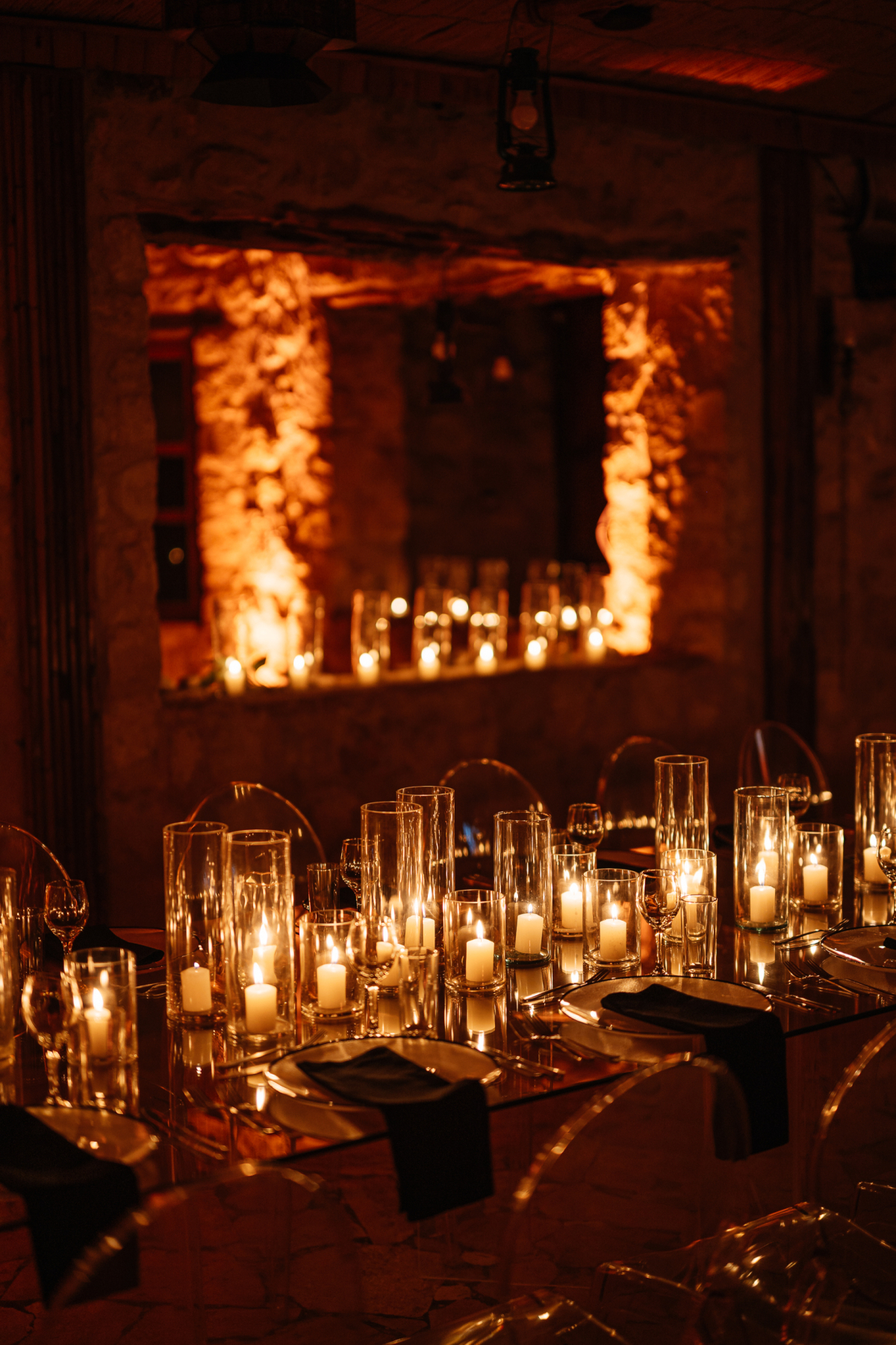 Чтобы не нарушить ощущение величия локации, мы взяли абсолютно невесомую мебель: прозрачную, легкую, воздушную. Вся атмосфера строилась на теплом свете свечей: важно было, чтобы внимание гостей было сосредоточено на самом месте, а не на декорациях.