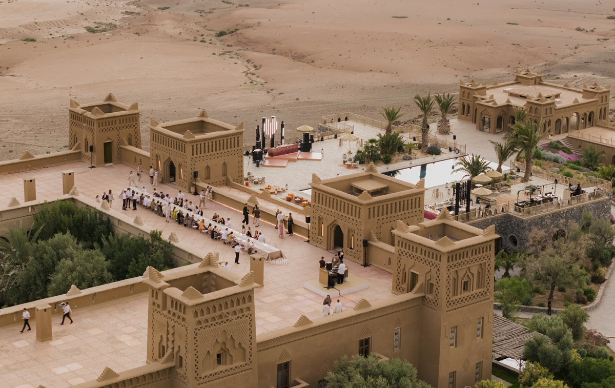 С Марокко мы уже были знакомы: работали здесь в 2018 и спустя семь лет снова вернулись в эту своенравную страну, где всегда много ограничений по декору и флористике. Правила с тех пор усложнились: если тогда мы могли привезти практически все самолетом из Москвы, то сейчас это стало невозможно. Пришлось заново выстраивать цепочку подрядчиков и логистику, но опыт прошлых лет сильно помог.