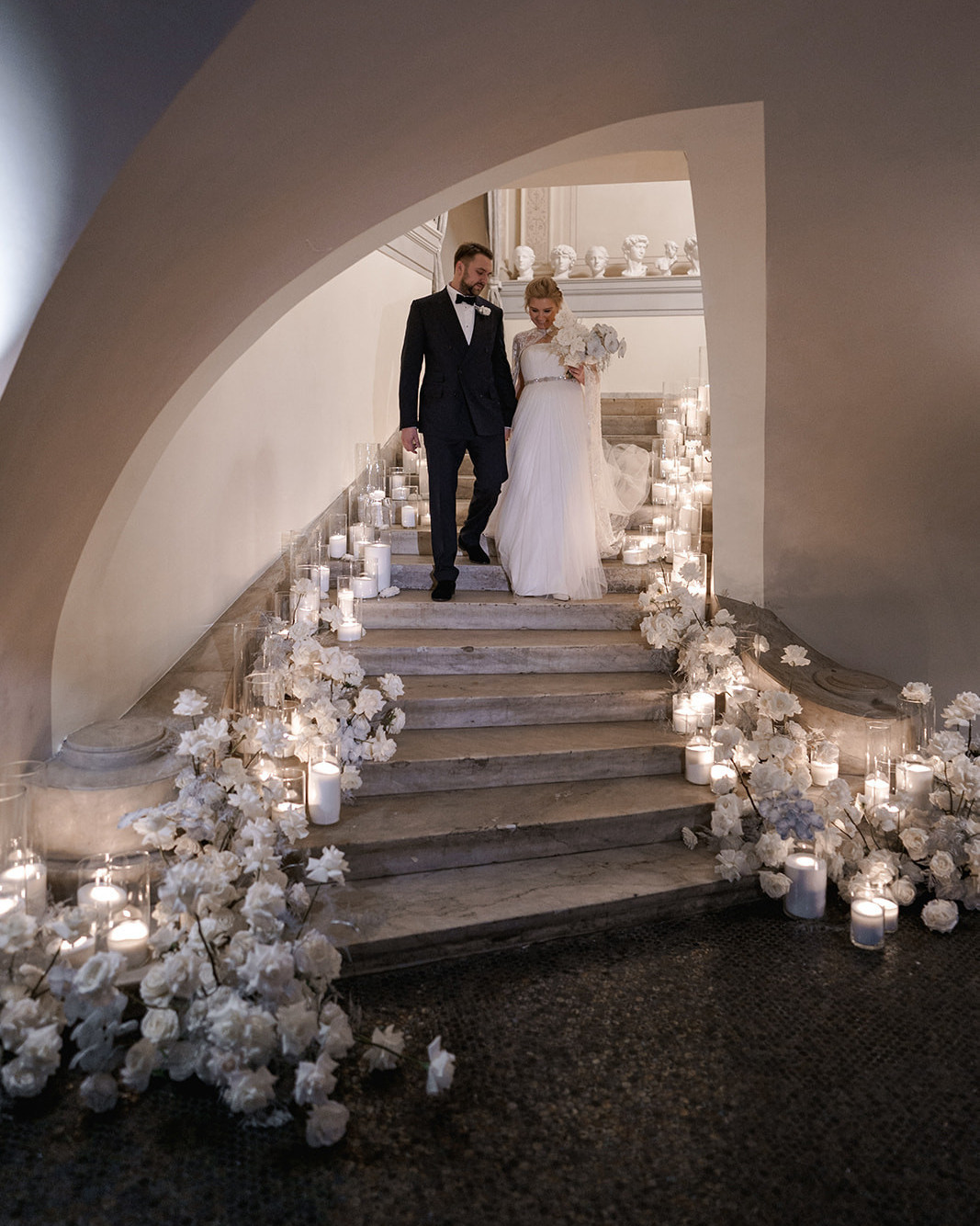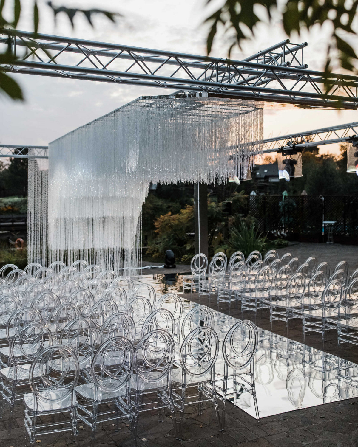 Классическая церемония занимает максимум минут 15: приветственное слово ведущего, выход жениха, выход невесты, клятвы, обмен кольцами, объявление мужем и женой. Вы можете добавить то, что вам хочется. Например, пригласить к зоне церемонии друзей жениха и подруг невесты, организовать символичный ритуал, попросить кого-то вынести вам кольца и многое другое — все, что вы видели в фильмах и о чем мечтали.