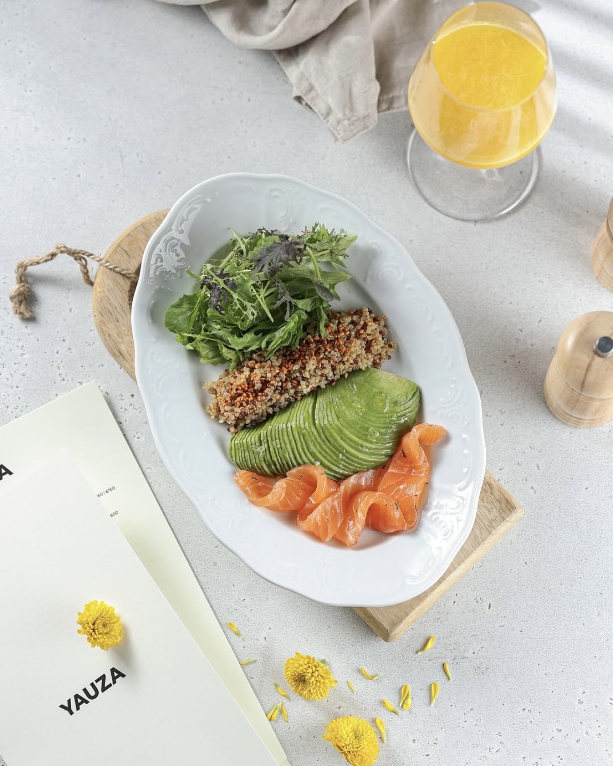 Чтобы начать утро нарядно и вкусно, советуем отправиться на субботний завтрак в ресторан Yauza. Шеф-повар Андрей Лапин угощает гречкой с яйцом пашот и пармезаном, бутербродом с красной икрой и взбитым маслом, омлетом с камчатским крабом, а также сырниками с черешней и сметаной. Тем, кто забронирует столик на временной слот с 10:00 до 12:00, комплиментарно нальют игристое.