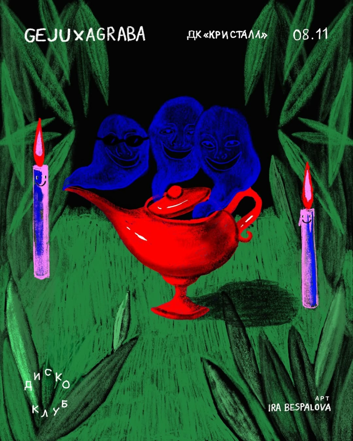 Насладиться электронной музыкой предлагаем в «Кристалле» на Самокатной улице. В эту субботу, 8 ноября, в стенах дома культуры будут ставить музыку и погружать в коллективную медитацию Agraba и Geju. Послушать мастеров эклектики и подвигаться под стильные ритмы можно с 23:00.