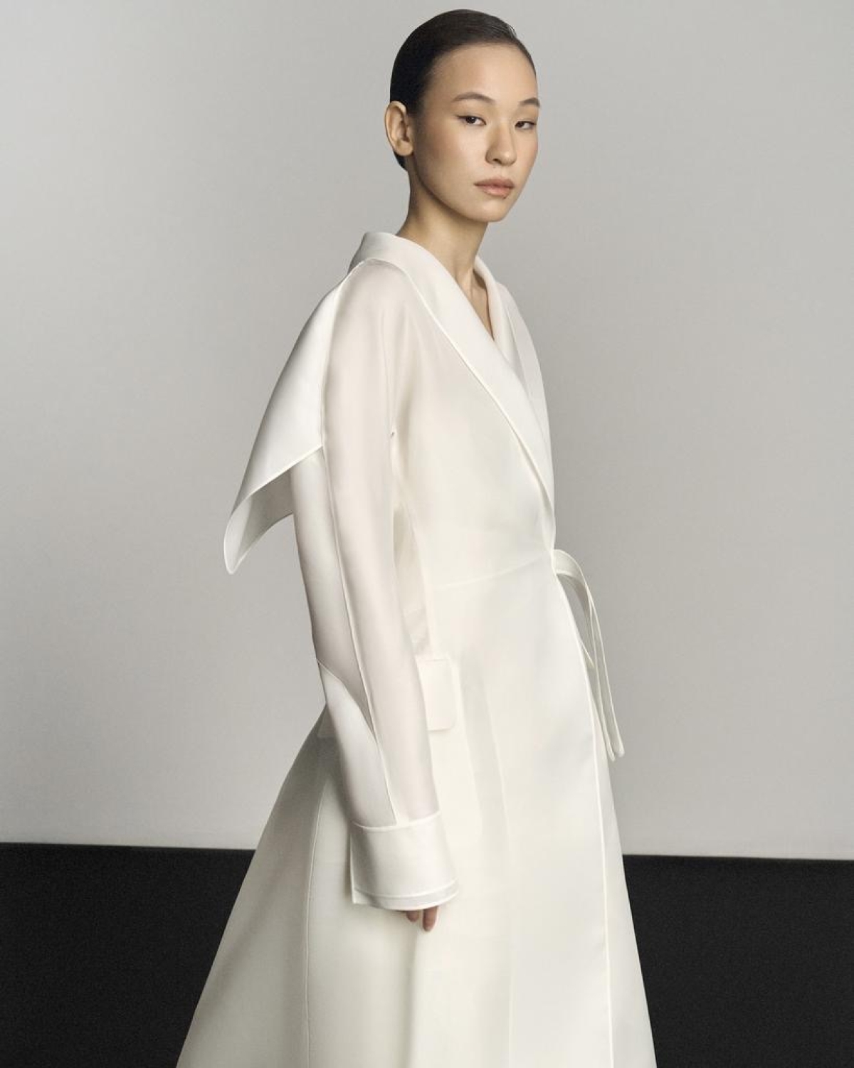 Нужно учитывать, что весенняя погода меняется каждый час — и ваш образ должен легко адаптироваться. На открытом воздухе утром это может быть строгое длинное пальто и очки. На момент церемонии верхнюю одежду лучше снять — и сместить акцент на длинные оперные перчатки и фату. А к вечернему банкету можно снять уже перчатки и добавить аксессуары — так один наряд проживет три разные жизни.