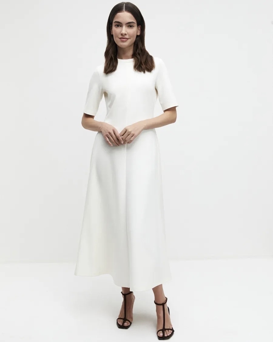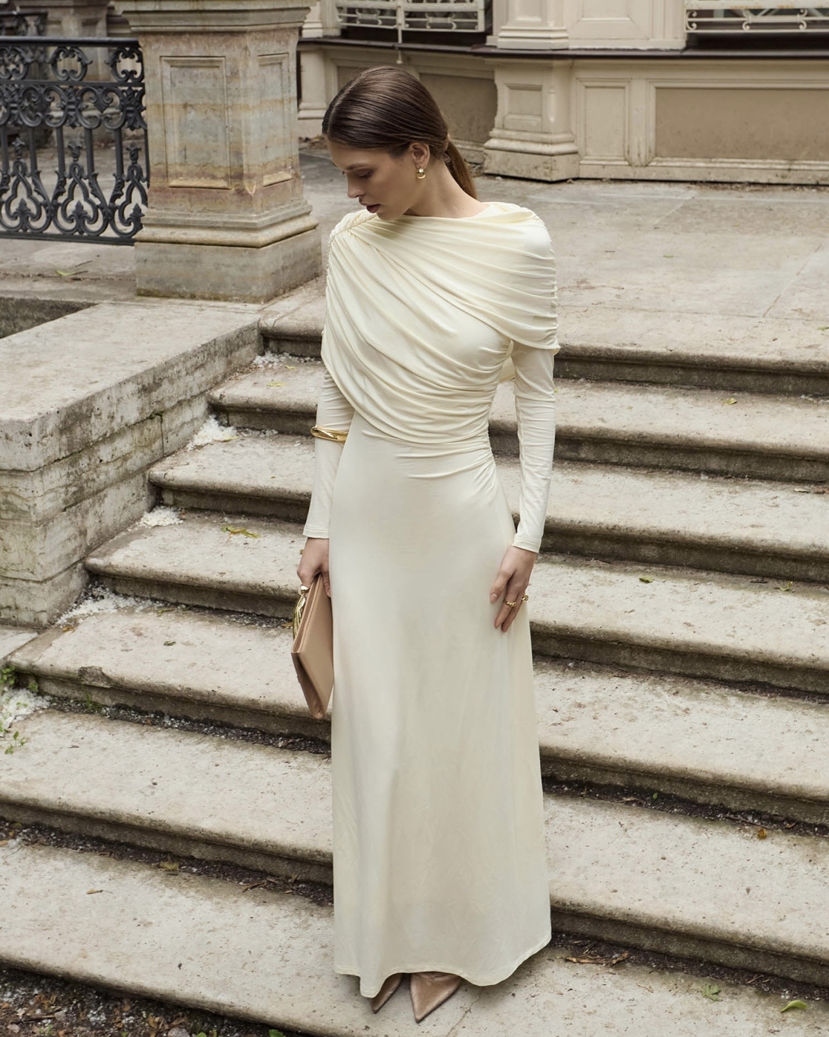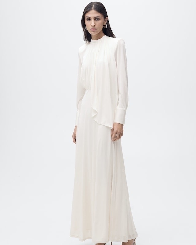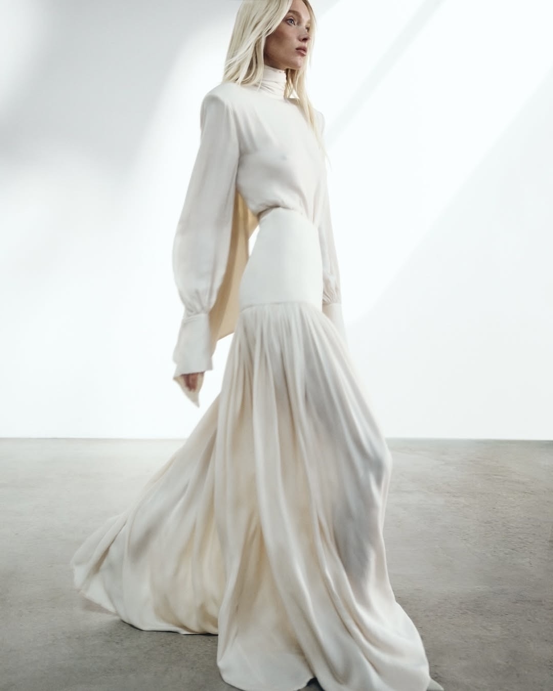 Венчание — сакральный обряд, предполагающий клятву в любви и верности друг другу перед вышними силами. Выполняется он по душевной потребности или с целью уважить (семейные) традиции. Поскольку венчание проходит в церкви, надеть эпатажное платье не получится — оставьте его для официальной части свадьбы. И сделайте выбор в пользу сдержанного варианта: без пышных деталей, с умеренным декольте, длиной миди или макси, с закрытой спиной и рукавами как минимум до локтей. А чтобы облегчить ваши поиски подходящего под запрос варианта, ниже собрали 26 лаконичных и вместе с тем стильных моделей.