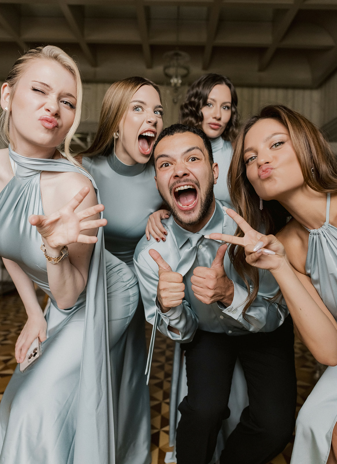 Как родилась идея классической визуальной концепции с подружками невесты (и другом невесты) в однотонных образах, как в американском кино?