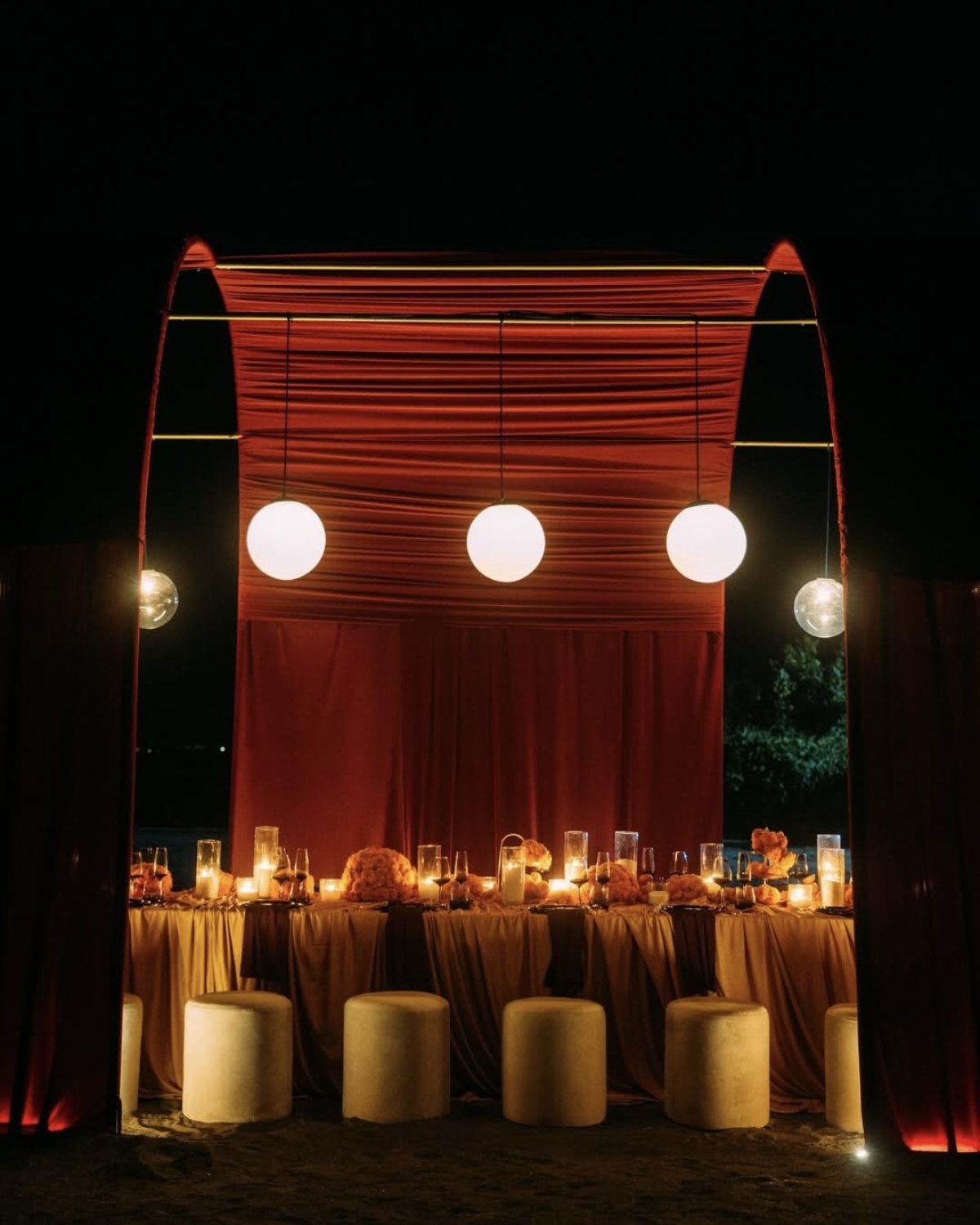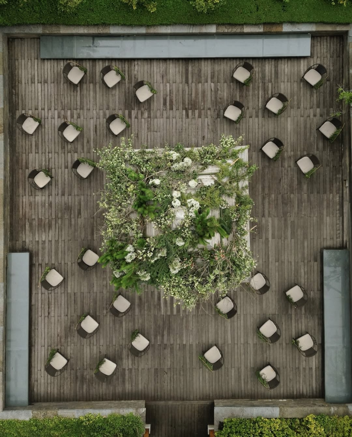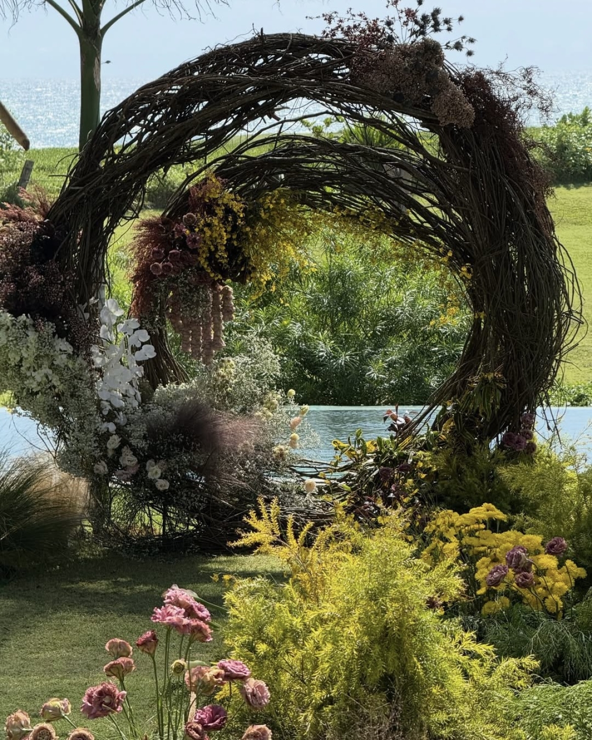 Вписанная в ландшафт флористика — визитная карточка балийской студии, чьи эксперименты не раз появлялись на страницах Vogue Weddings. Команда делает ставку на фотогеничные композиции и формы: в пышном оформлении знакомые нам розы или гортензии переплетаются с местными тропическими цветами, фруктами или растениями и напоминают сад. Увидеть, какие невероятные арки делает команда, обязательно нужно тем, кто планирует свадьбу на свежем воздухе и особенно рядом с водой.