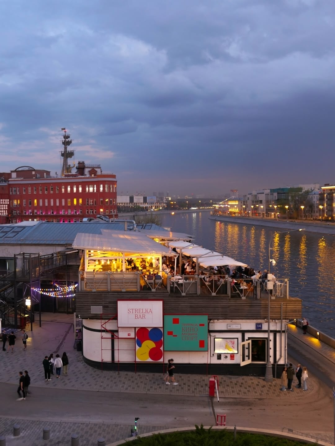 «Стрелка» — одно из главных мест притяжения московской тусовки, которая знает толк в красивых вечеринках. Бар находится на Красном Октябре, откуда открывается вид на Москву-реку и храм Христа Спасителя. На открытой террасе можно расположиться за столиком или панорамной барной стойкой, позавтракать, поужинать или просто выпить по бокалу игристого, апероля или лимонада. Особый кайф — прийти сюда на живое выступление или одну из летних вечеринок с участием приглашенных диджеев, которые проходят как на террасе, так и во внутреннем дворике бара.