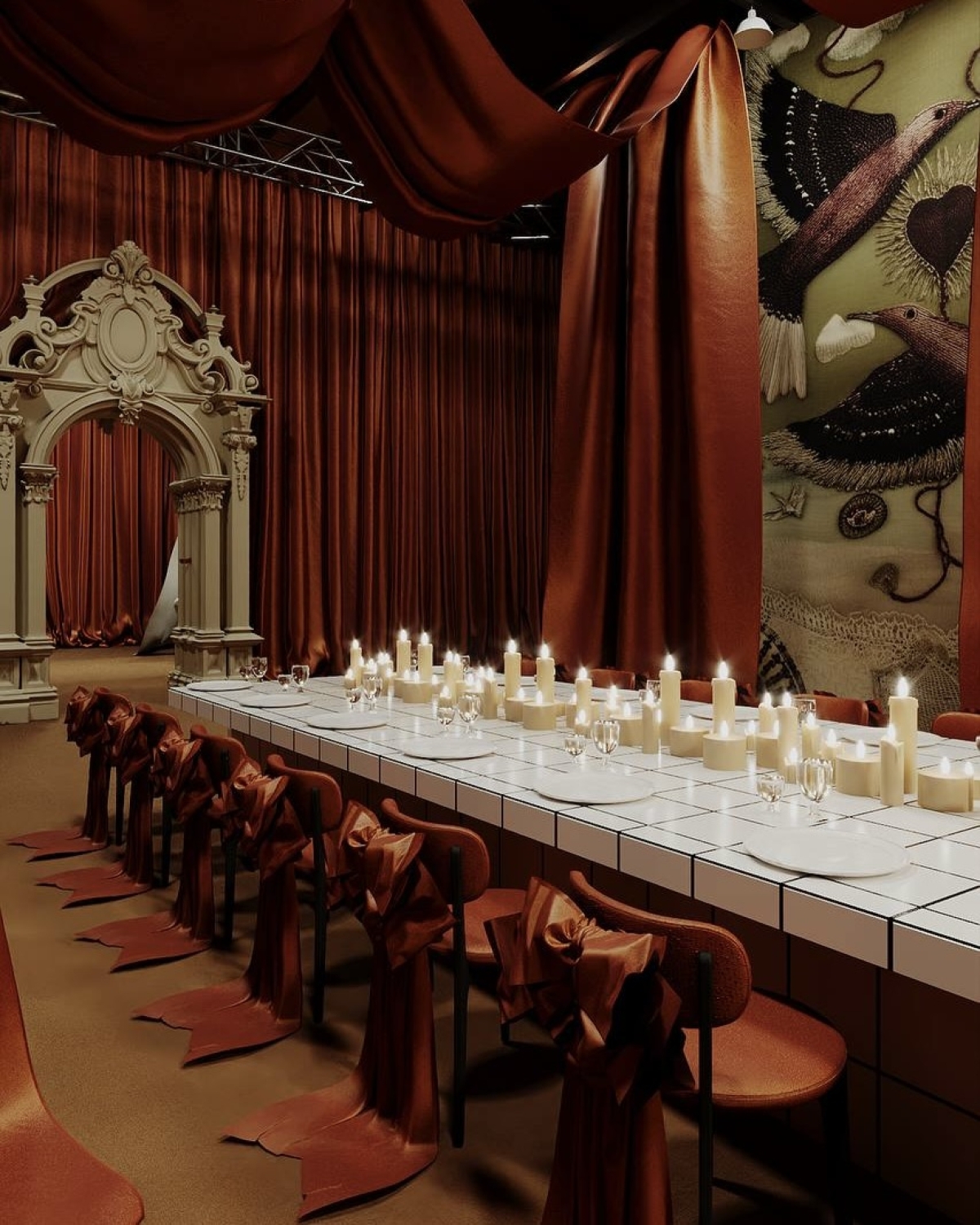 Команда Bizarre отвечала за концепцию и арт-дирекшен — полный визуальный язык события. Это включало разработку всех имиджей, создание рендеров, подготовку брифов для декораторов и проработку каждой детали пространства — от сценографии до шрифта на карточках рассадки.