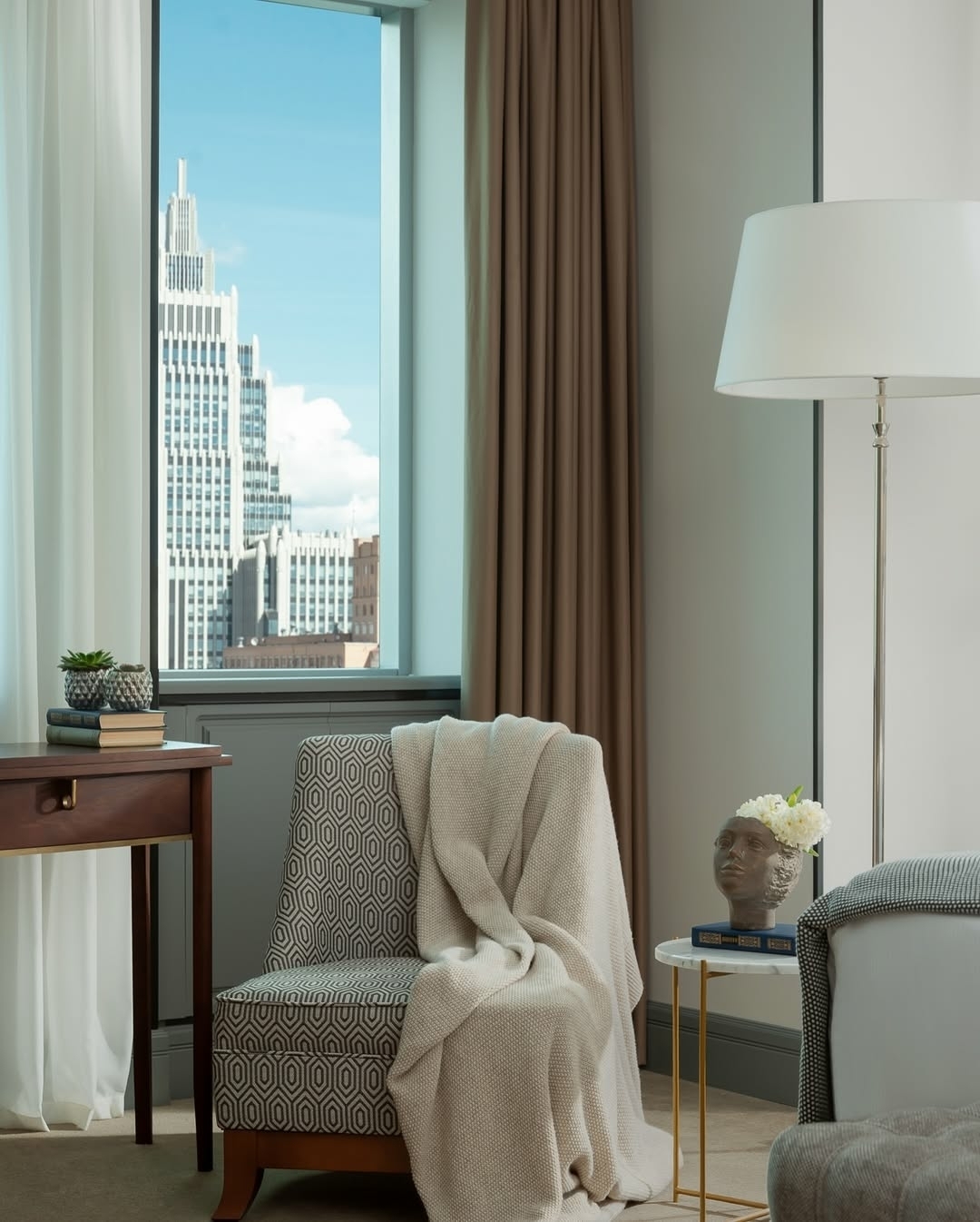 Если вы живете в столице, то наверняка слышали о «Рихтере», который знаменит своим живописным двориком с шумными вечеринками и камерными кинопоказами. А еще рестораном, библиотекой и мастерскими. Но в старинном особняке есть и атмосферный номерной фонд из 7 авторских комнат, названных в честь животных, чьи изображения сохранились при росписи потолка. Здесь и «Тигр», и «Лев», и «Перепелка», которые очаруют вас своим изысканным современным дизайном в сочетании с историческими элементами. Самый маленький номер в «Рихтере» занимает 42 квадратных метра, а самый большой (Mansard Suite) — 62. Так что если и в выходной день вам нужен укромный уголок с рабочим пространством — смело бронируйте один из номеров. Но не забудьте о том, что в отеле проходят и мастер-классы, и мероприятия, и тематические ужины, поэтому, если заскучаете в мансарде в центре Москвы — спускайтесь по кованой лестнице в лобби отеля.