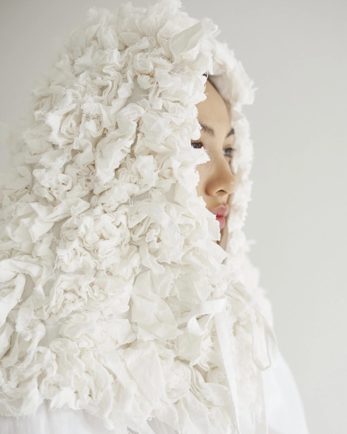 Еще одну альтернативу фате увидели на кутюрном показе Chanel от Матье Блази — не удивляйтесь, но это большая фактурная резинка. На шоу в образе невесты она была дополнена бахромой и эффектно разлеталась во все стороны.