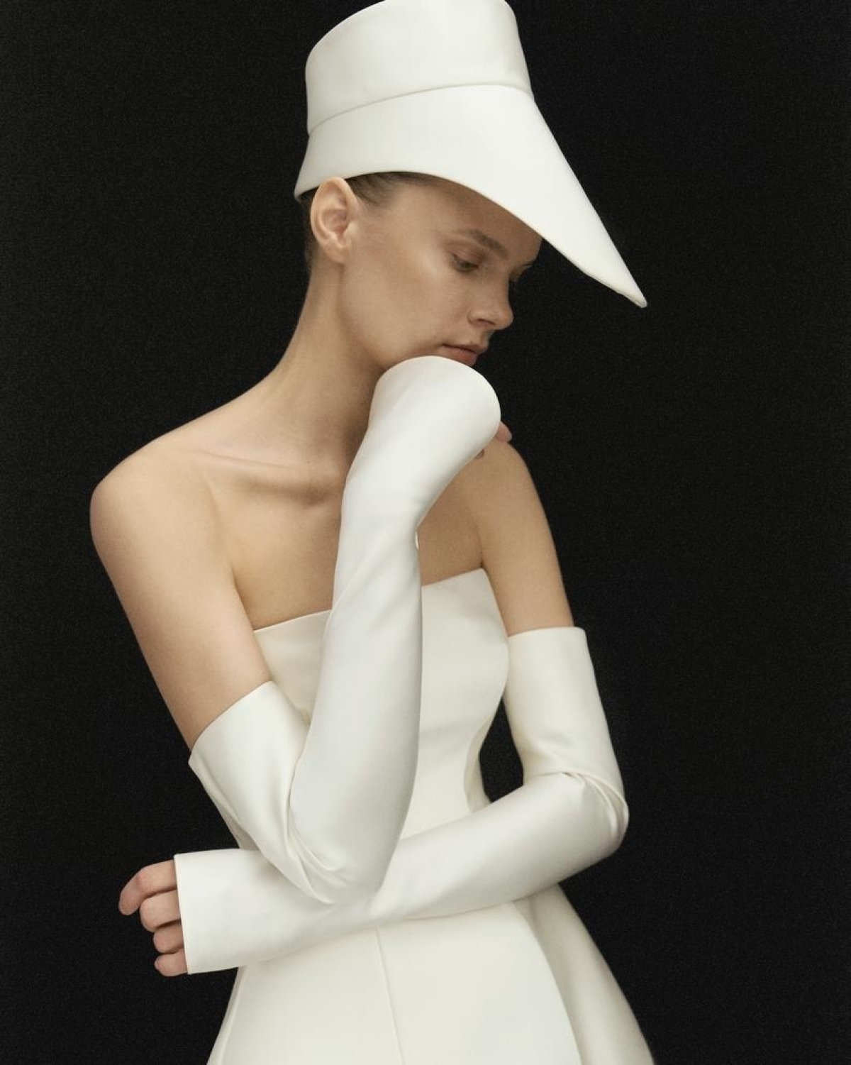 В 2026-м свадебный образ может обойтись совсем без головного убора. Тогда акцент смещается на руки с помощью перчаток выше локтя — они заменят фату как элемент торжественности.