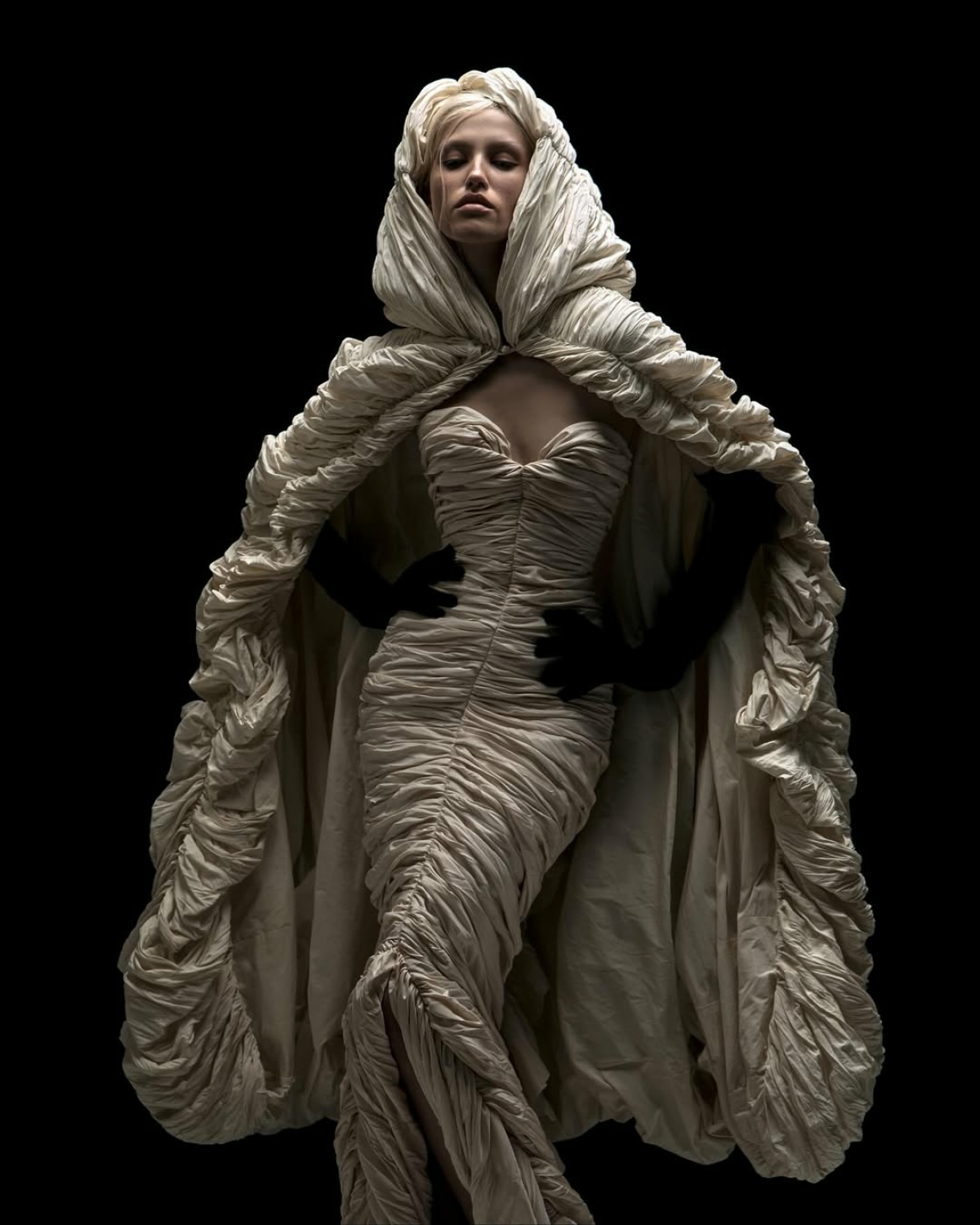 Невесты увидели капюшоны у Энтони Ваккарелло, который отшил их для показа Saint Laurent SS'23. Сегодня в свадебной моде они встречаются как часть платья или отдельный аксессуар. Подойдет тем, кто мечтает о загадочном и драматичном образе.