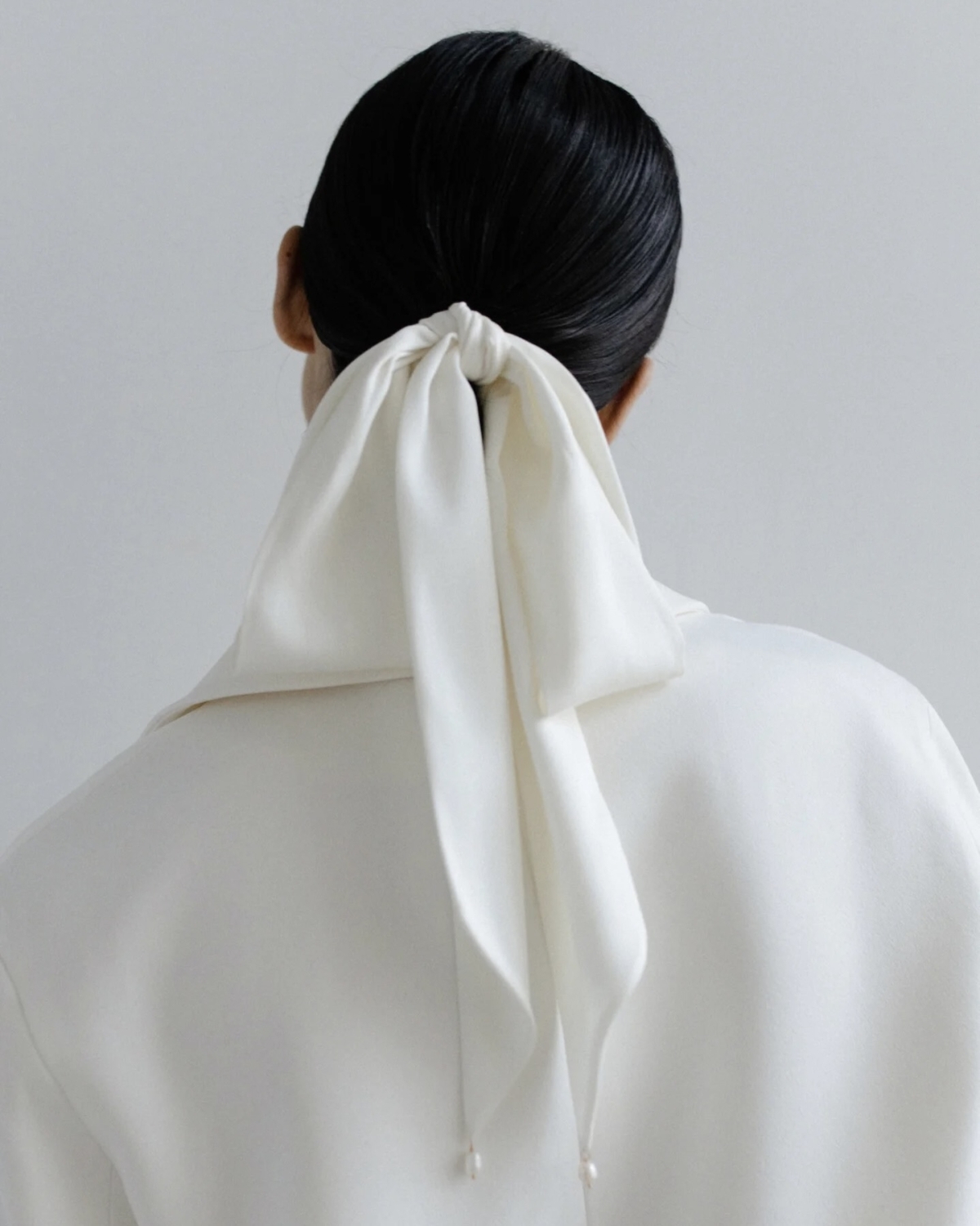 В 2026-м банты еще актуальны, но смотря какие. Выбирайте минималистичные модели, которые можно прикрепить на затылок или повязать на хвост. Самыми беспроигрышными будут белые однотонные варианты — они точно не перегрузят образ.