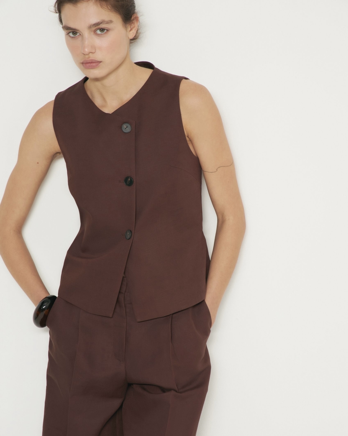 Лен — самый летний материал, который пропускает воздух и охлаждает тело. Потому вещи из натуральных волокон считаются сезонной классикой, которая не зависит от трендов. Остается решить: небесно-голубой брючный костюм, коричневый жакет на кулиске или лимонный комплект с мини?