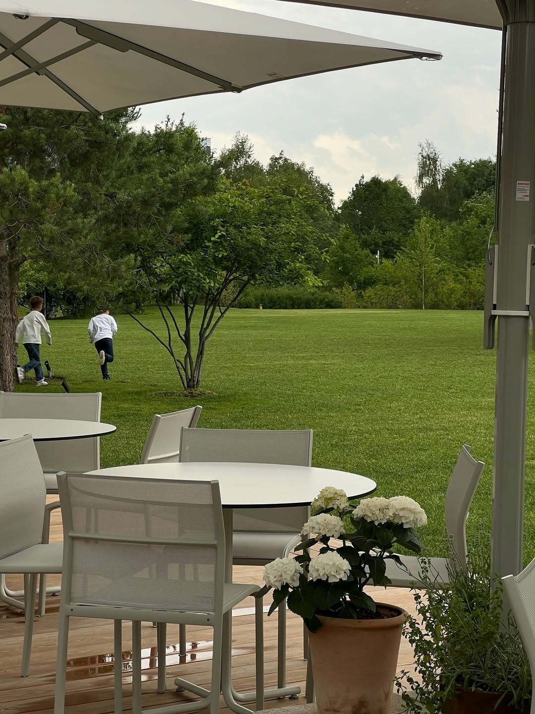 Несмотря на то что The Rink находится в «Сколково», не съездить сюда в один из выходных (а лучше — будничных) дней будет преступлением. Один из самых главных плюсов этого скрытого от посторонних глаз места — зеленая территория с газоном, на котором можно не только поиграть в мяч или бадминтон, но и устроить настоящий пикник с блюдами из местного ресторана или кофейни. Наш совет: если вы не хотите стоять в очереди за столиком, заказывайте еду с собой, занимайте один из лежаков или располагайтесь прямо на траве.