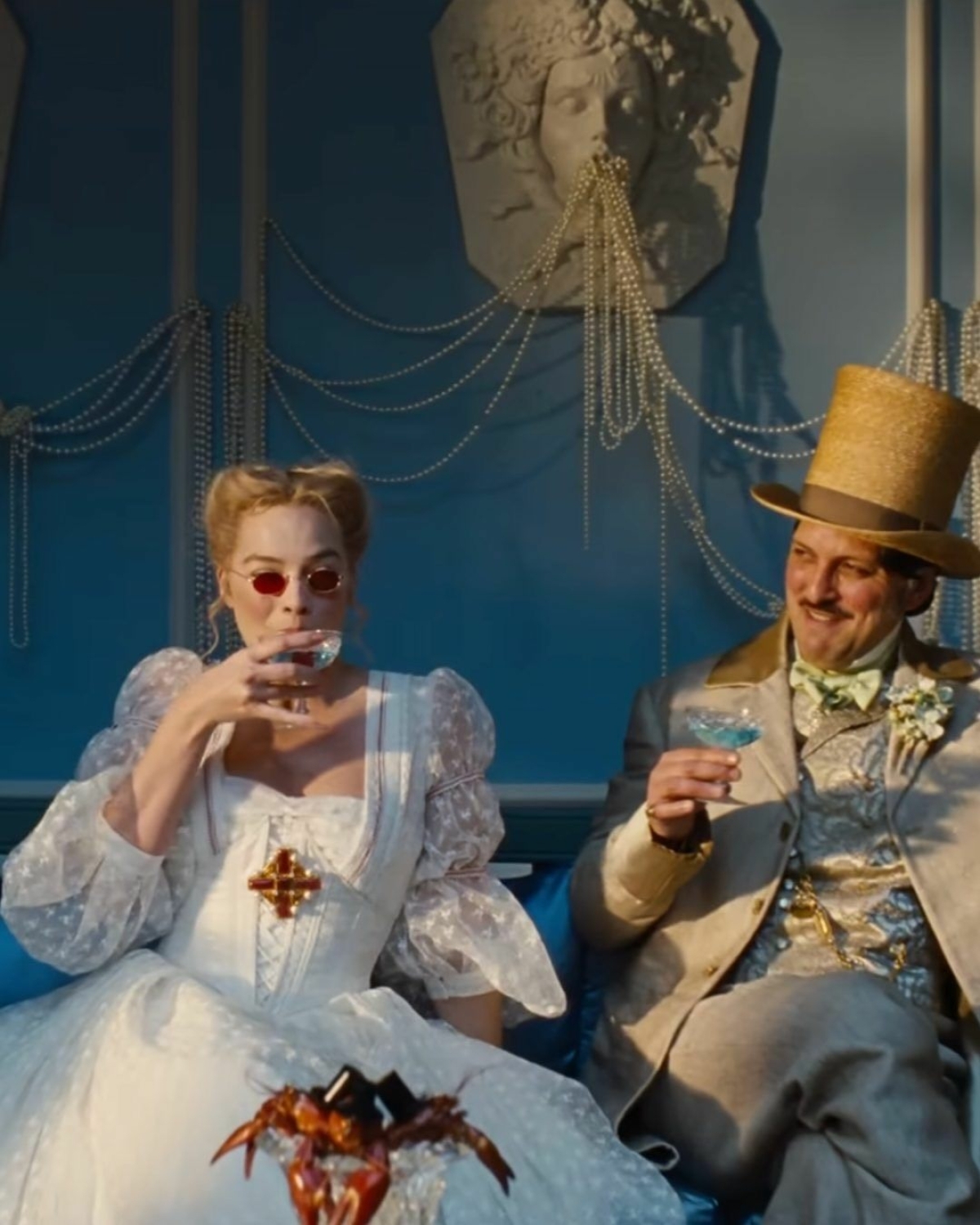 Поместье Линтонов, «Мыза Скворцов», противопоставлено «Грозовому перевалу» во всем. Оно наполнено светом, золотым декором и идеальными пропорциями. Здесь нет ни ветра, ни грязи, ни хаоса. Но чем дольше камера задерживается в этих интерьерах, тем очевиднее становится их неестественность.