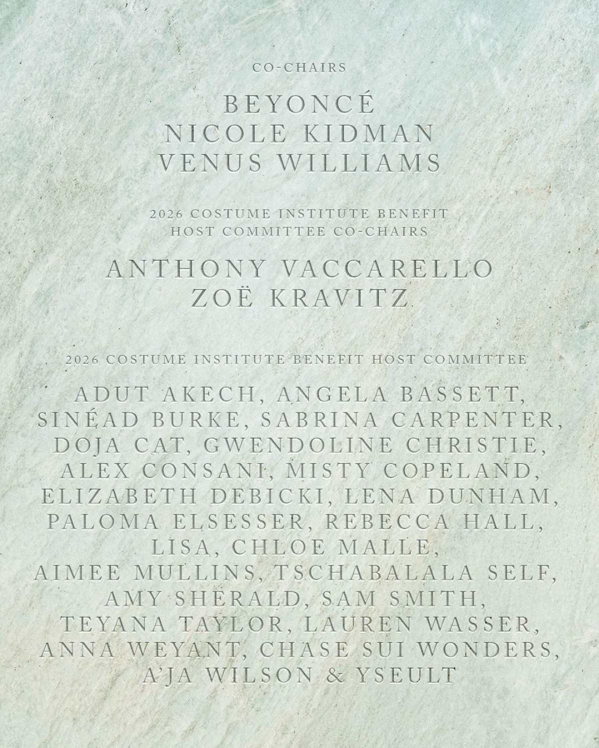 Традиционно ожидается явка сопредседателей бала. Это бессменная Анна Винтур, Бейонсе (увидим на дорожке впервые за десятилетие), Винус Уильямс, Николь Кидман и внезапно чета Безосов, которые до сих пор еще не появлялись на традиционно главном модном событии из-за разногласий с Винтур.