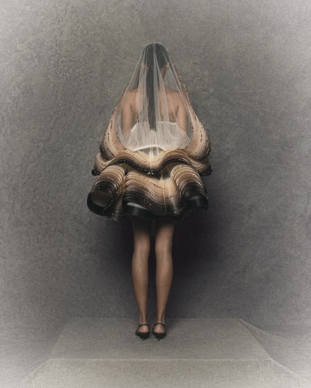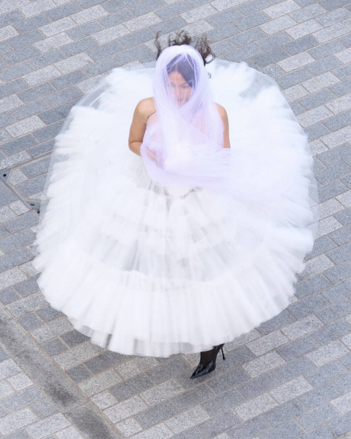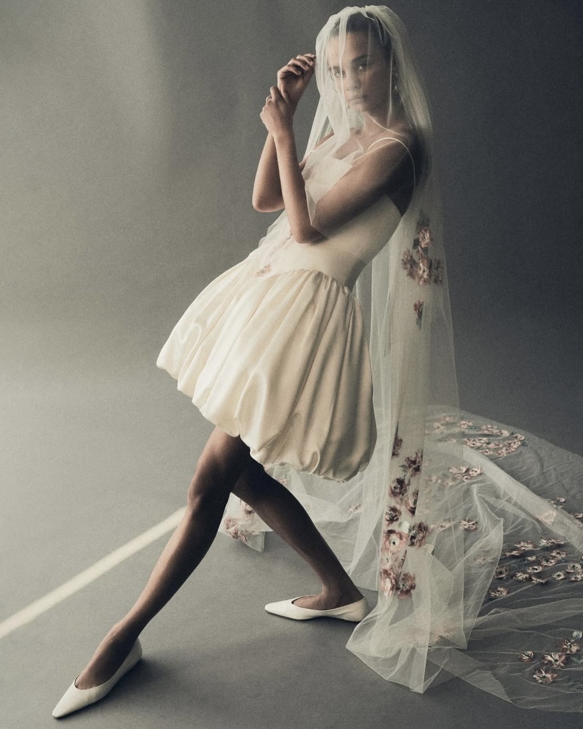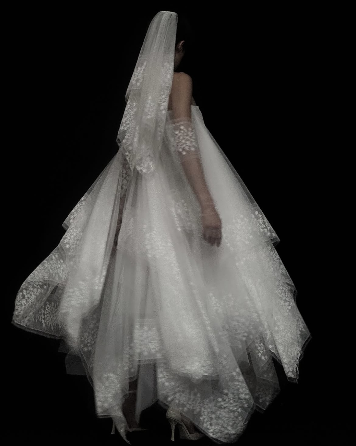Во-вторых, у фаты особая эстетика. Многие профессионалы часто используют полупрозрачную вуаль как настроенческий элемент в свадебном контенте, она добавляет загадочности или, напротив, дерзости. А стилисты завершают фатой образ.
