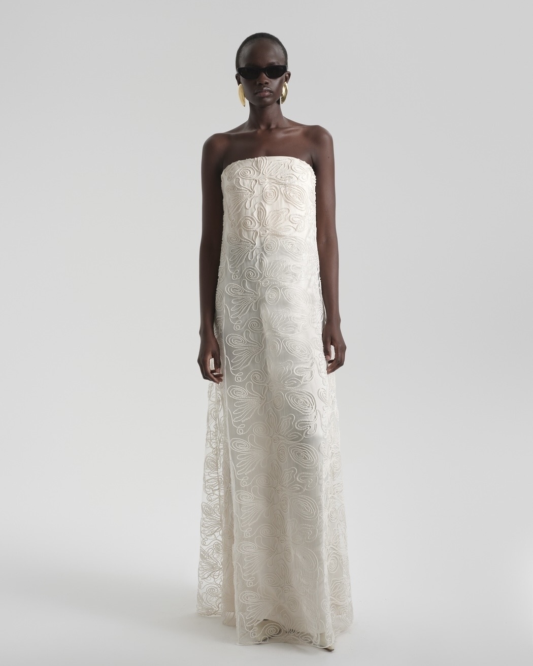 После выхода «Материалистки» Дакона Джонсон заставила модниц всерьез задуматься не только о том, чтобы (а может?) отрезать челку, но и пополнить гардероб ослепительным платьем без бретелей. Для тех, кто еще не успел посмотреть главный ромком лета, у нас есть безобидный спойлер: героиня (она работает в известном брачном агентстве Нью-Йорка) появляется в кобальтовом платье Proenza Schouler на свадьбе своей клиентки. Что было дальше, рассказывать не будем и только добавим: бандо — беспроигрышный вариант для летнего образа на выход. Стилизовать его предлагаем по примеру героини Дакоты, тем более, что серебристые босоножки найдутся здесь, а то самое нашумевшее платье — в модной подборке ниже.
