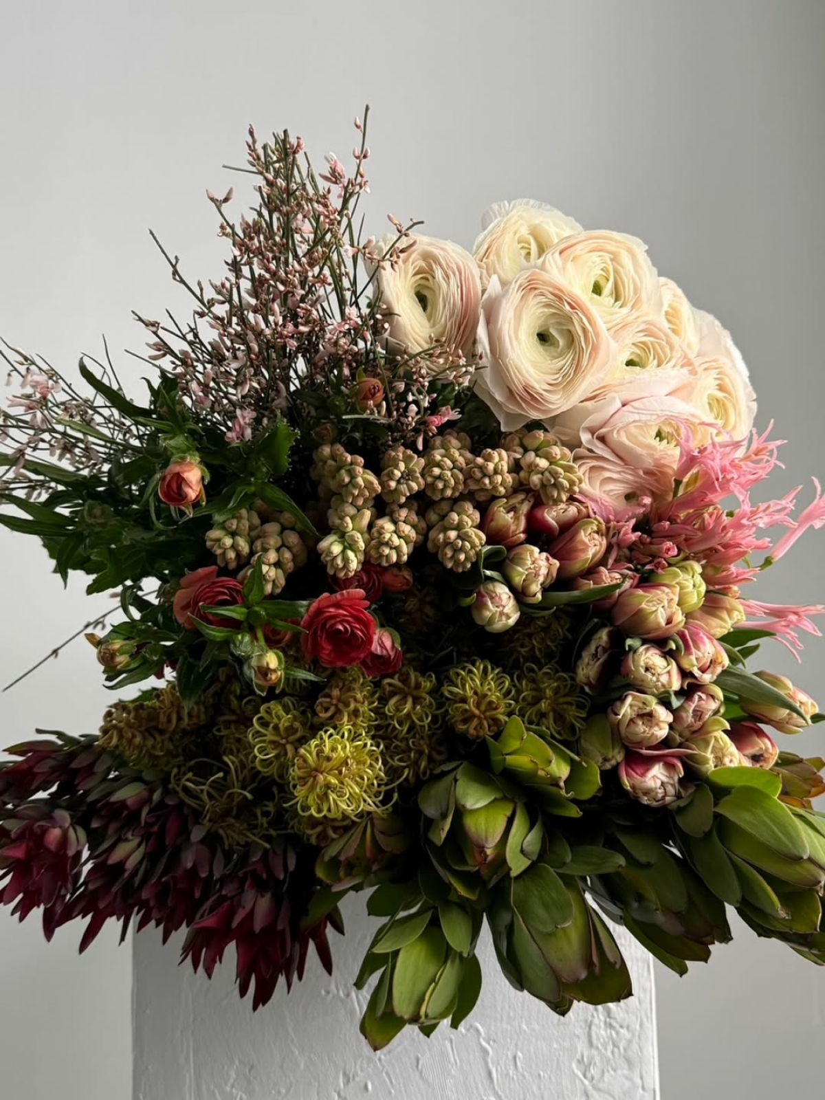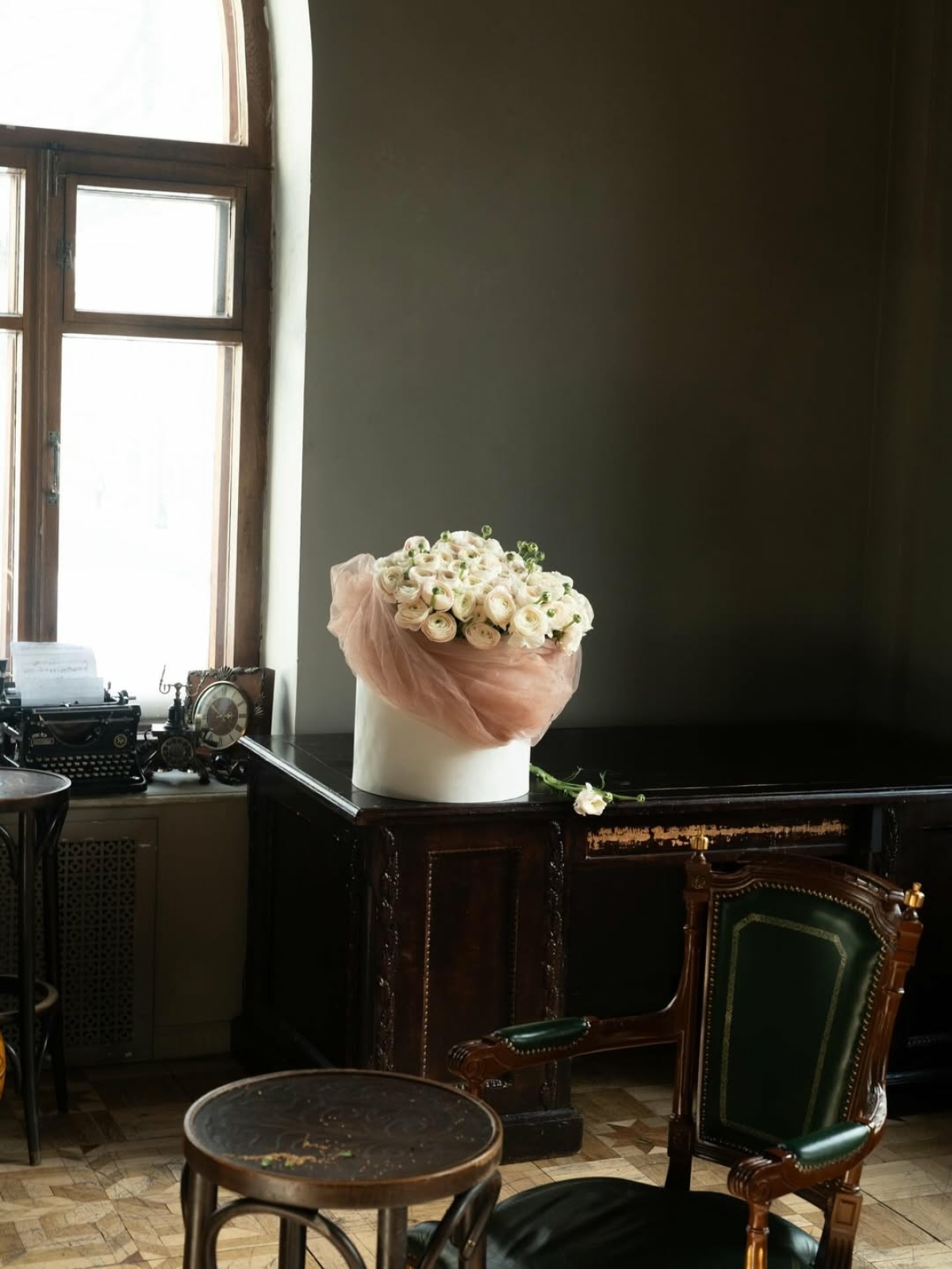 «Мак Бюро» — студия, которая уверенно стирает границу между цветочной композицией и объектом интерьера. Их букеты часто построены на многоуровневости и архитектурной форме — такие композиции хочется разглядывать со всех граней. Некоторые из них сразу оформлены в вазе, поэтому становятся готовым элементом декора. Заказать букет можно онлайн или заглянуть в мастерскую на Садовнической улице, 78с1, чтобы выбрать композицию лично.
