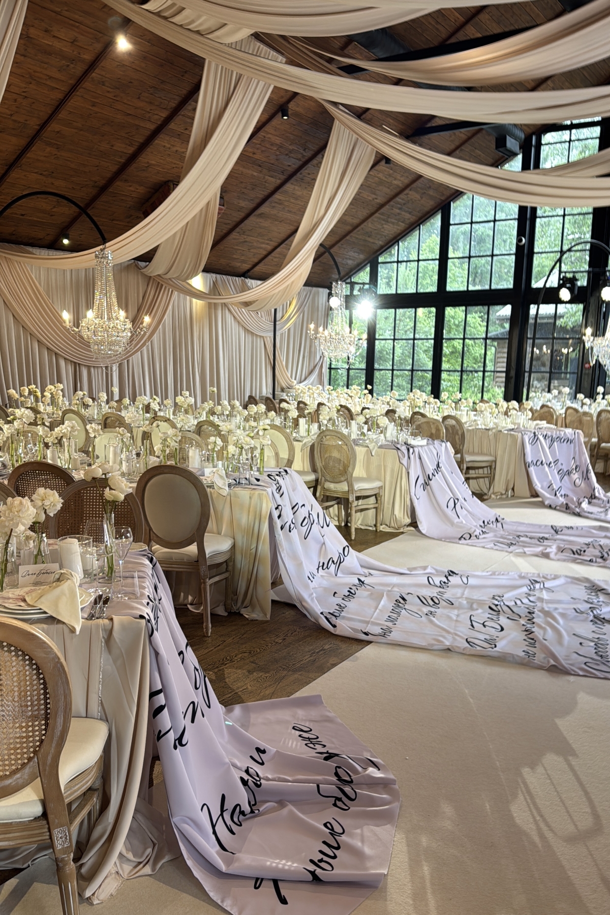 Подготовку начали за полгода. Каждую деталь прорабатывали вручную. Например, для каждого гостя мы подготовили персональную карточку с воспоминанием или фразой, которая нас связывает. А еще — QR-код с оживленными совместными фото. Хотелось, чтобы праздник был не только про нас, но и про всех, кто рядом.