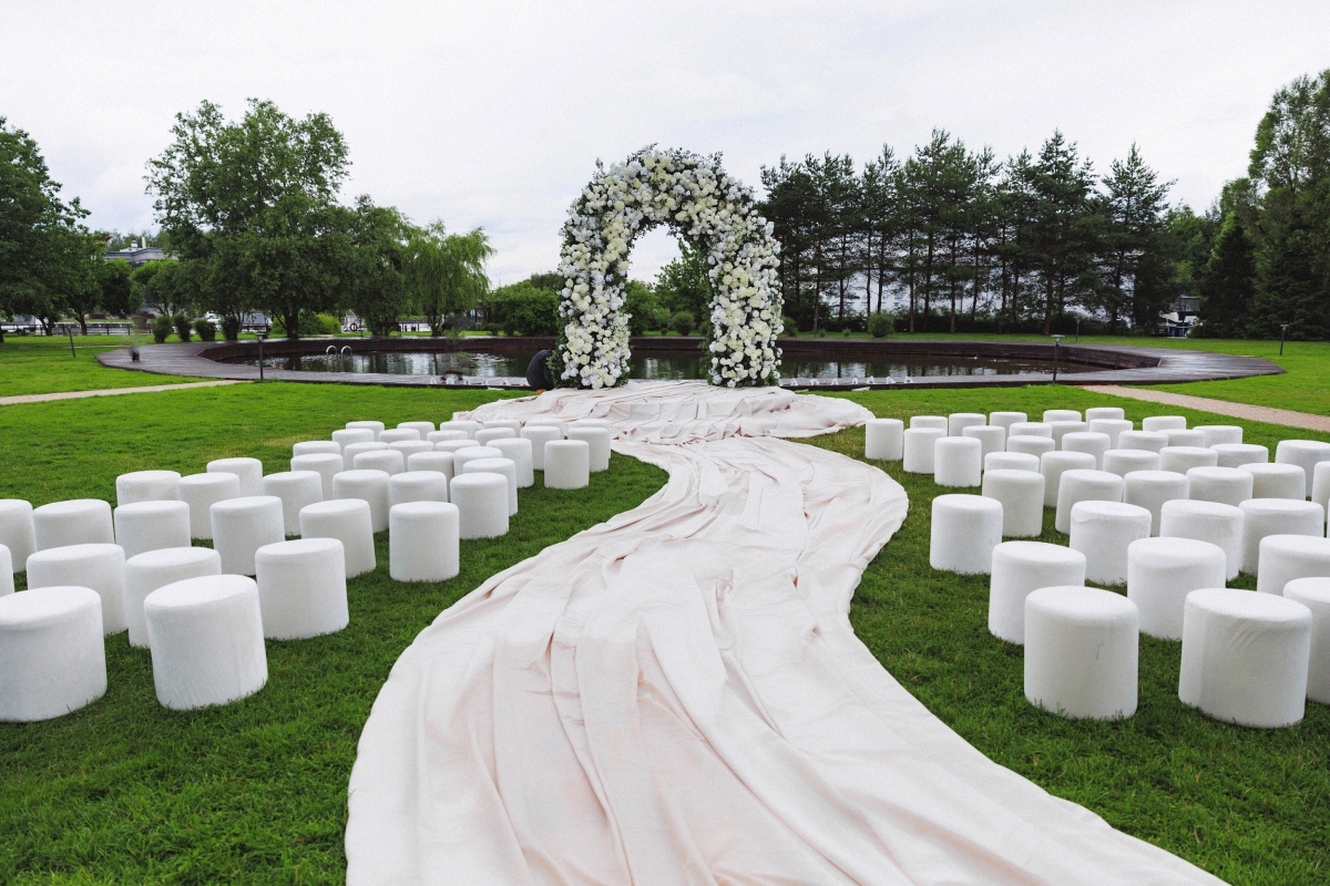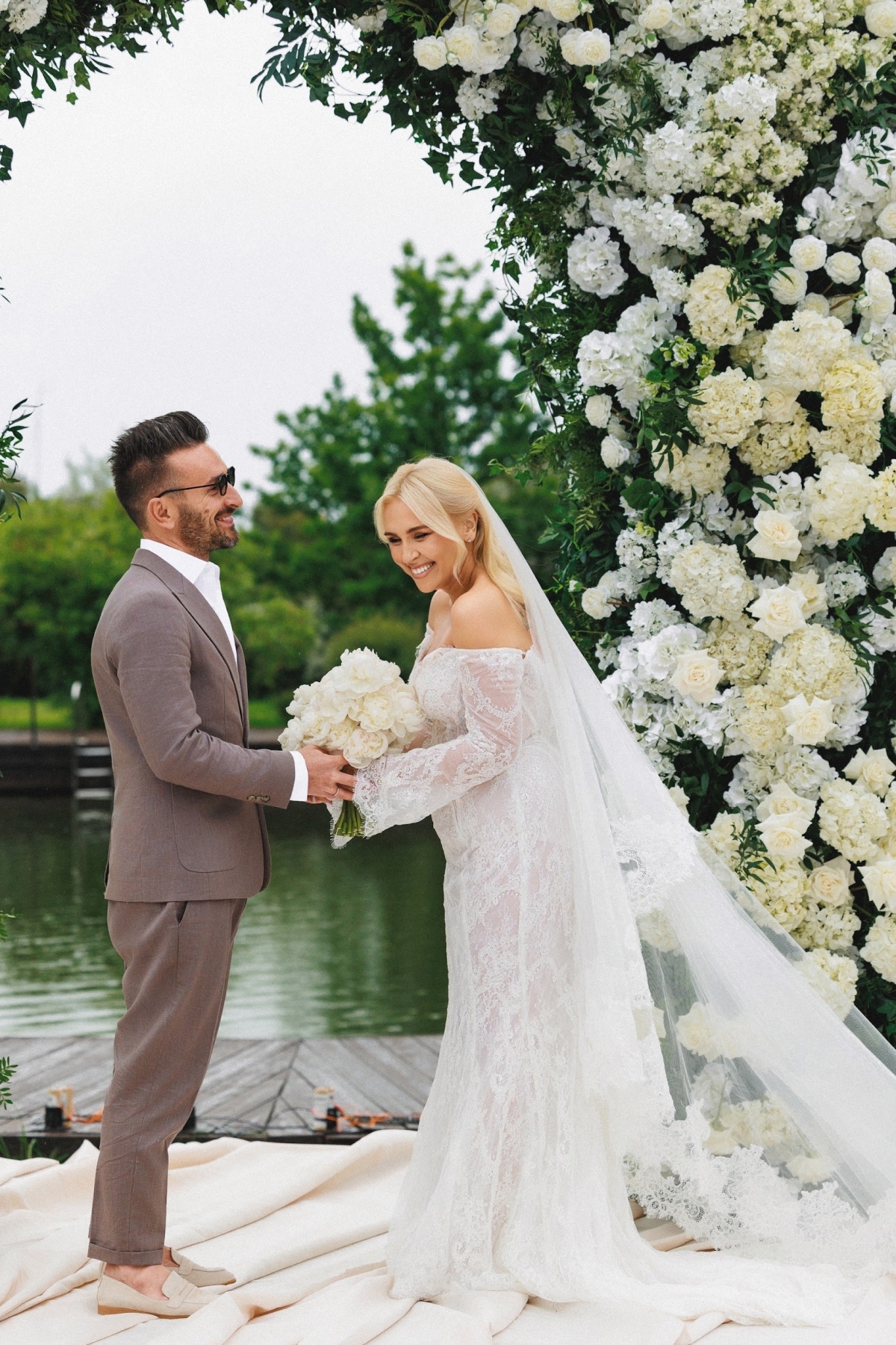 Мы отмечали не годовщину свадьбы, а именно 25 лет с начала наших отношений. Мы так и назвали этот день: «25 лет нашей любви». Уже давно хотели сделать церемонию в классическом романтичном стиле — с аркой из живых цветов, пионами, люстрами. И обязательно — на природе, чтобы за спиной была вода.