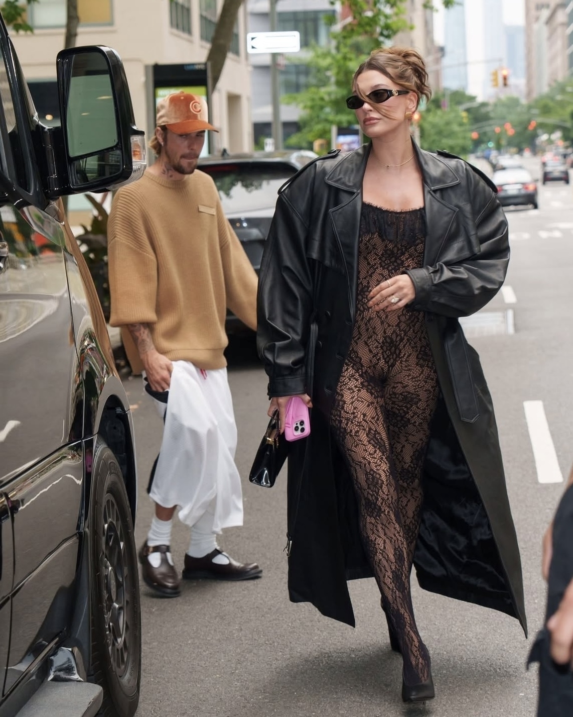 Хейли может быть не только романтичной и милой, но и довольно строгой, сексуальной и шокирующей публику (особенно если надевает прозрачное). Джастин, конечно, тоже не отстает и иногда вместо любимых кроксов может надеть и что-то более статусное. Например, кожаные туфли. Чтобы повторить этот стиль, необязательно выбирать «голый» образ, как у Хейли. Можно обойтись моделирующим комбинезоном, тренчем и лодочками в черном цвете. Мужчинам же будет куда проще, ведь белые носки, повседневные туфли, свободные шорты и бежевый джемпер — то, что есть почти в каждом гардеробе.