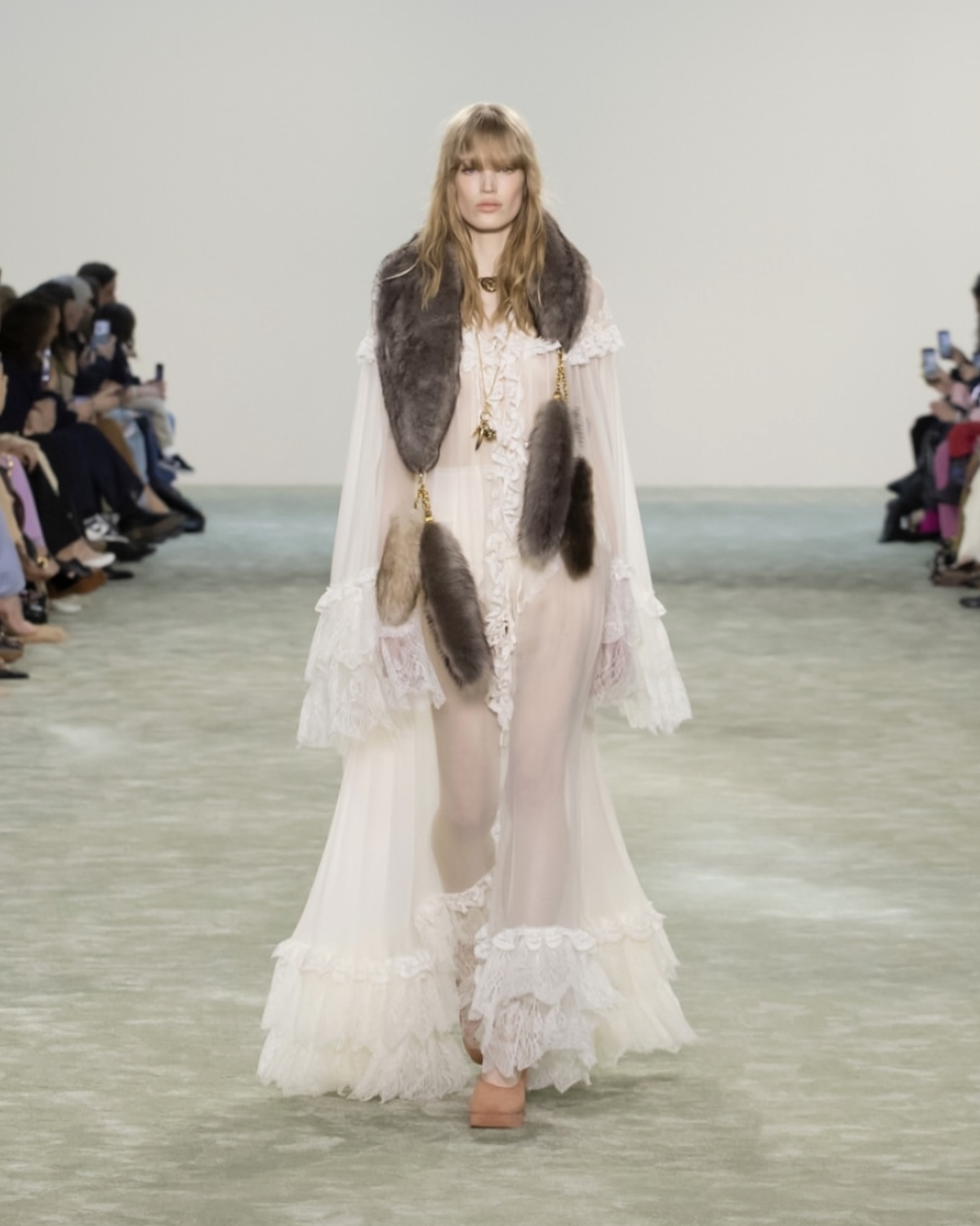 Одной из главных особенностей бохо-шика Chloe всегда были струящиеся силуэты. И тут есть несколько вариантов. Первый — когда ткань повторяет изгибы фигуры. Здесь могут отлично подойти комбинации или приталенные топы. Во втором варианте ткани создают будто воздушные и совершенно новые формы и очертания. Отличным примером такой одежды могут стать накидки и брюки свободного кроя.