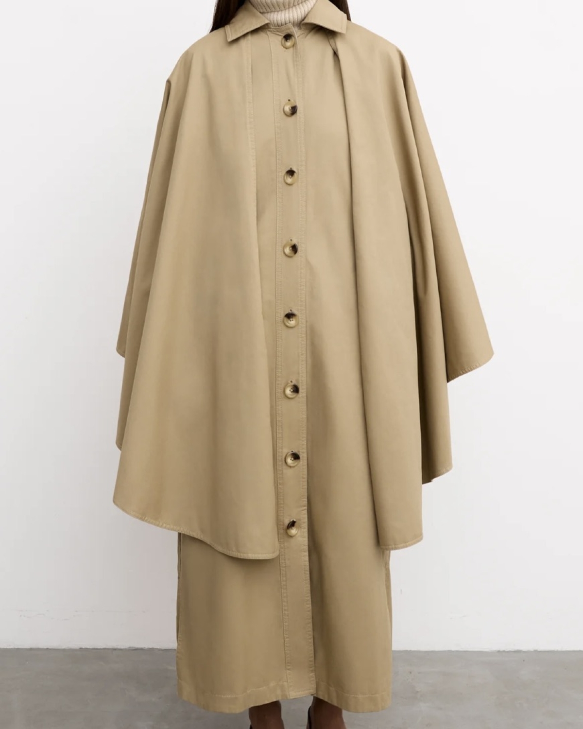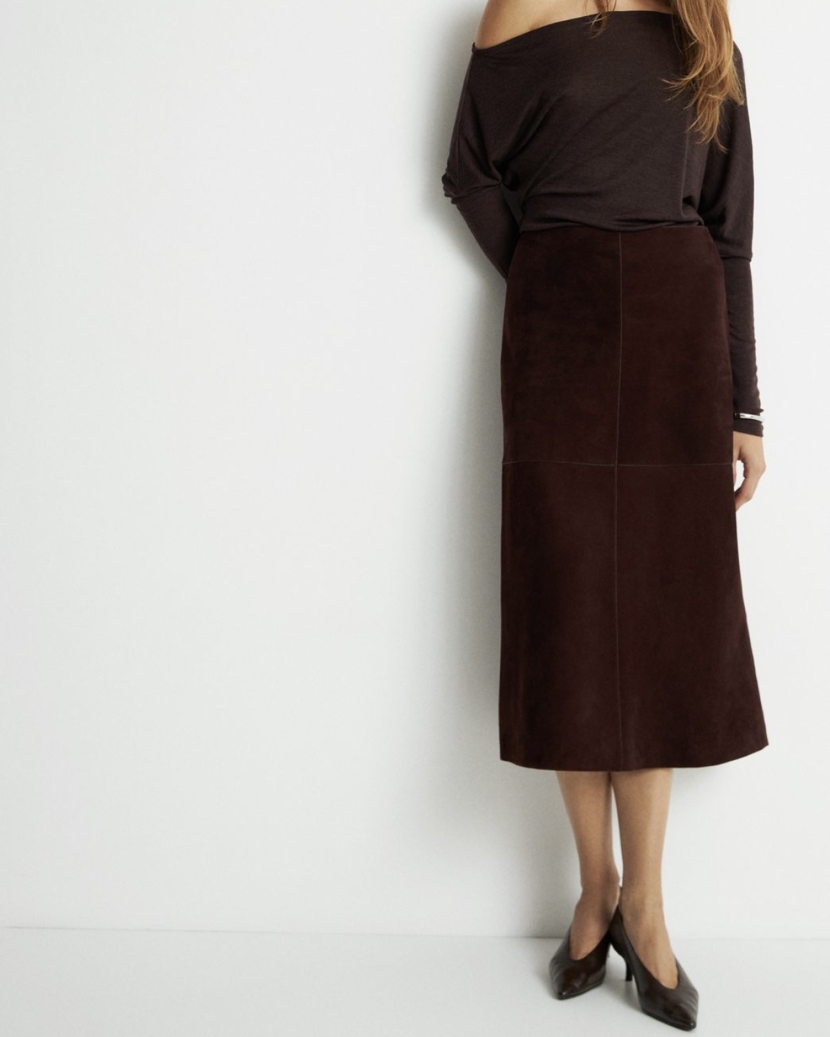 Шерстяное пончо Chaika; замшевая юбка Lime