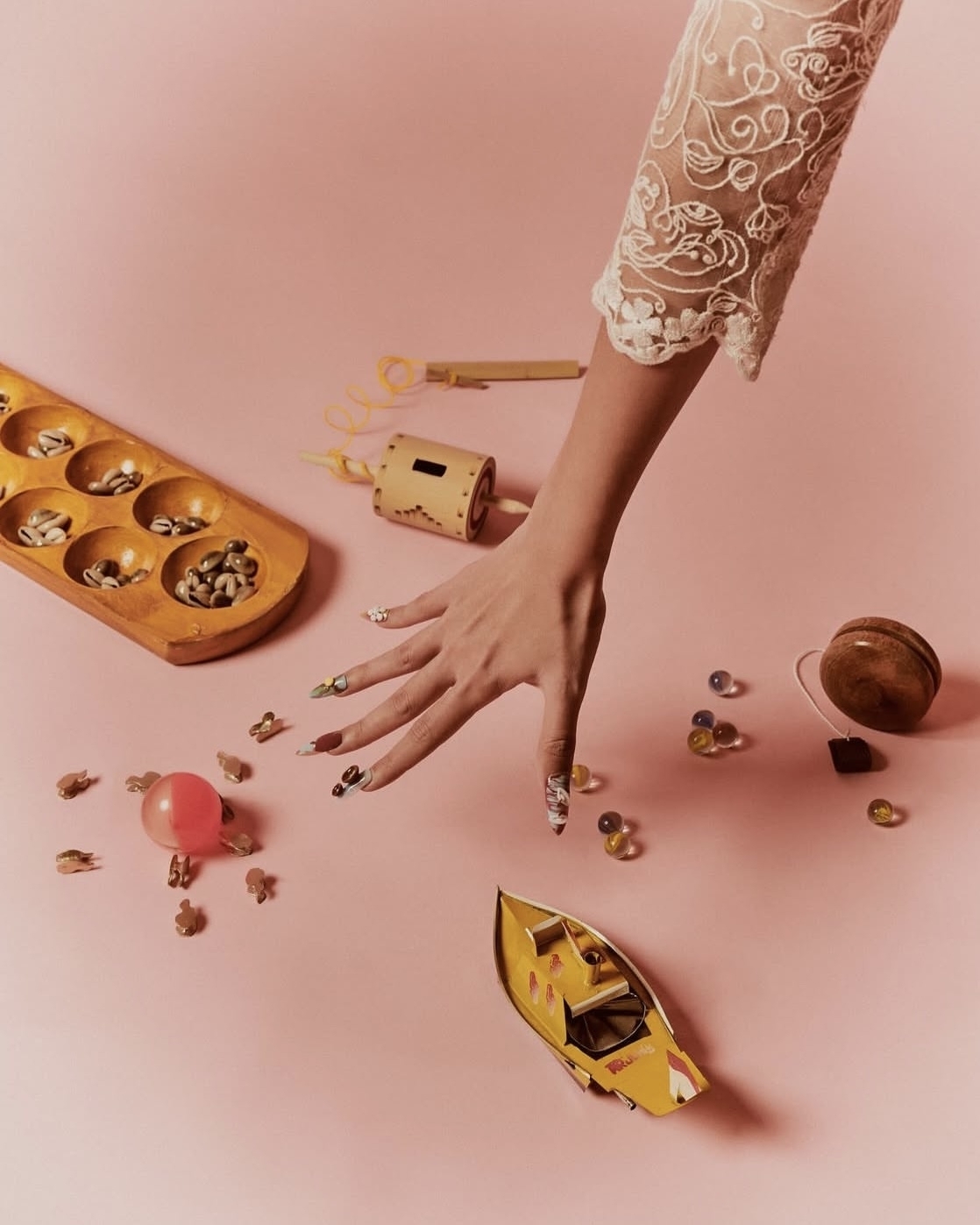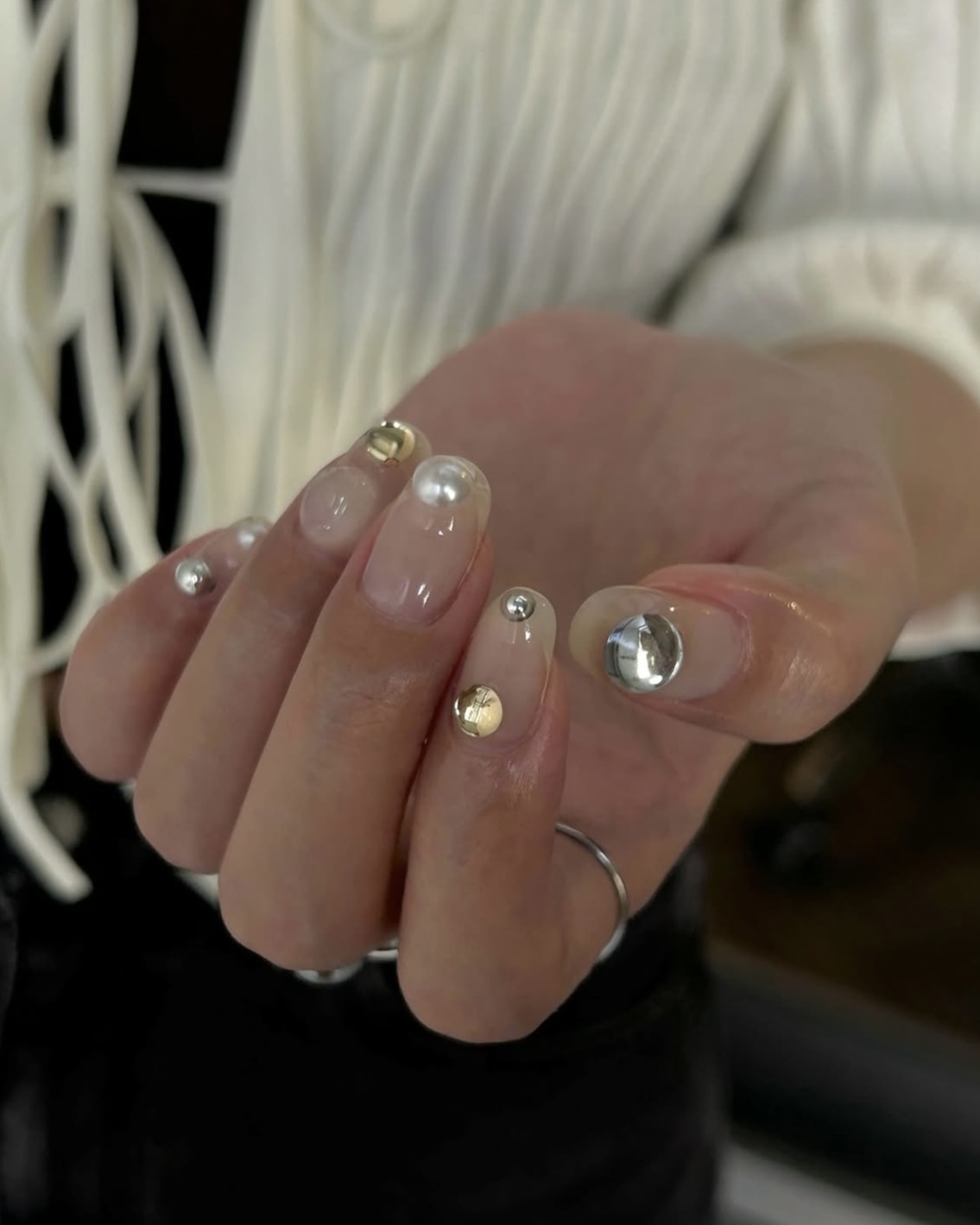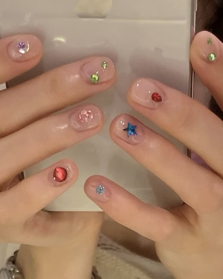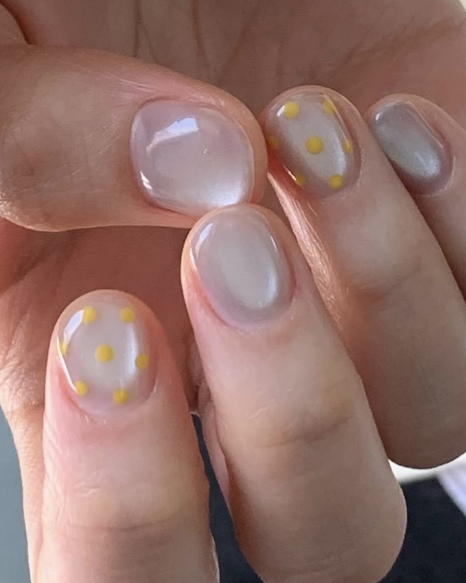 Выбирайте легкую полупрозрачную основу или оставляйте ногти и вовсе без покрытия — его заменит объемный дизайн разных форм и размеров.