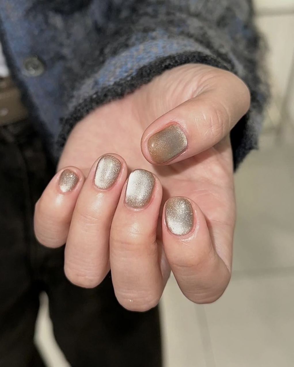 Если стразы вам не близки, но блистать по-прежнему хочется, — выбирайте новогоднюю классику и делайте незамысловатый мерцающий маникюр. Лучше всего по стилю и смыслам подойдут втирка в любимых оттенках Красной Огненной Лошади, гель-лак с блестками в тон платью, объемные металлические рисунки или покрытие «кошачий глаз». Мерцающий дизайн можно замиксовать с однотонным или полупрозрачным — так ногти будут выглядеть более деликатно.