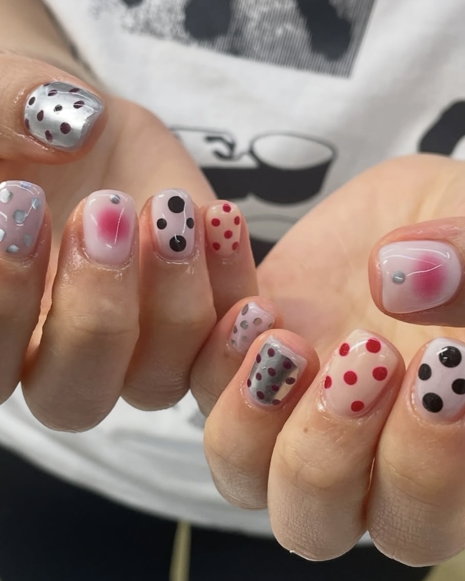 Маникюр в горошек вот уже несколько сезонов пользуется огромной популярностью у модных инфлюенсеров. И не зря: вариаций — миллион. Здесь можно поэкспериментировать с небанальным сочетанием цветов, инверсией или размером горошка. Хорошо будут смотреться комбинации с другими, более легкими дизайнами или френчем. А для новогодней ночи подойдет и блестящая база.