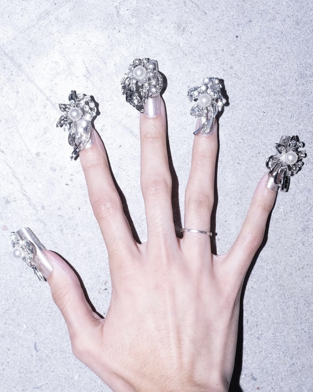 Самый что ни на есть новогодний маникюр — тот, что из космоса видно. Таким вполне можно назвать дизайн с объемными бусинами или стразами. И кажется, чем больше их будет, тем лучше. Правда, тогда придется выбрать платье поскромнее, чтобы образ не выглядел перегруженным.
