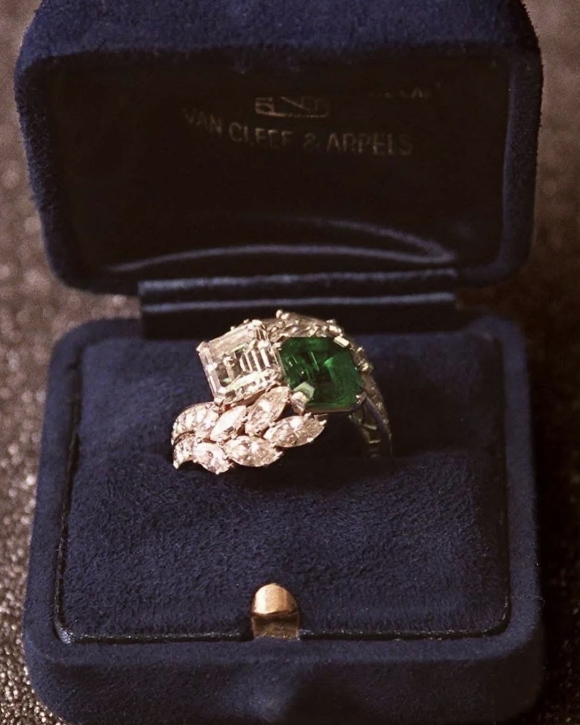 Спустя два года после знакомства случилась долгожданная помолвка. И несмотря на слухи об изменах Кеннеди, Жаклин все-таки приняла предложение. Помолвочное кольцо ювелирного бренда Van Cleef & Arpels стало еще одним поводом для обсуждения. И не только из-за цены (стоило оно более миллиона долларов), но и благодаря довольно неклассическому дизайну в духе ар-деко — с бриллиантом и изумрудом винтажной багетной огранки весом 2,88 и 2,84 карата.