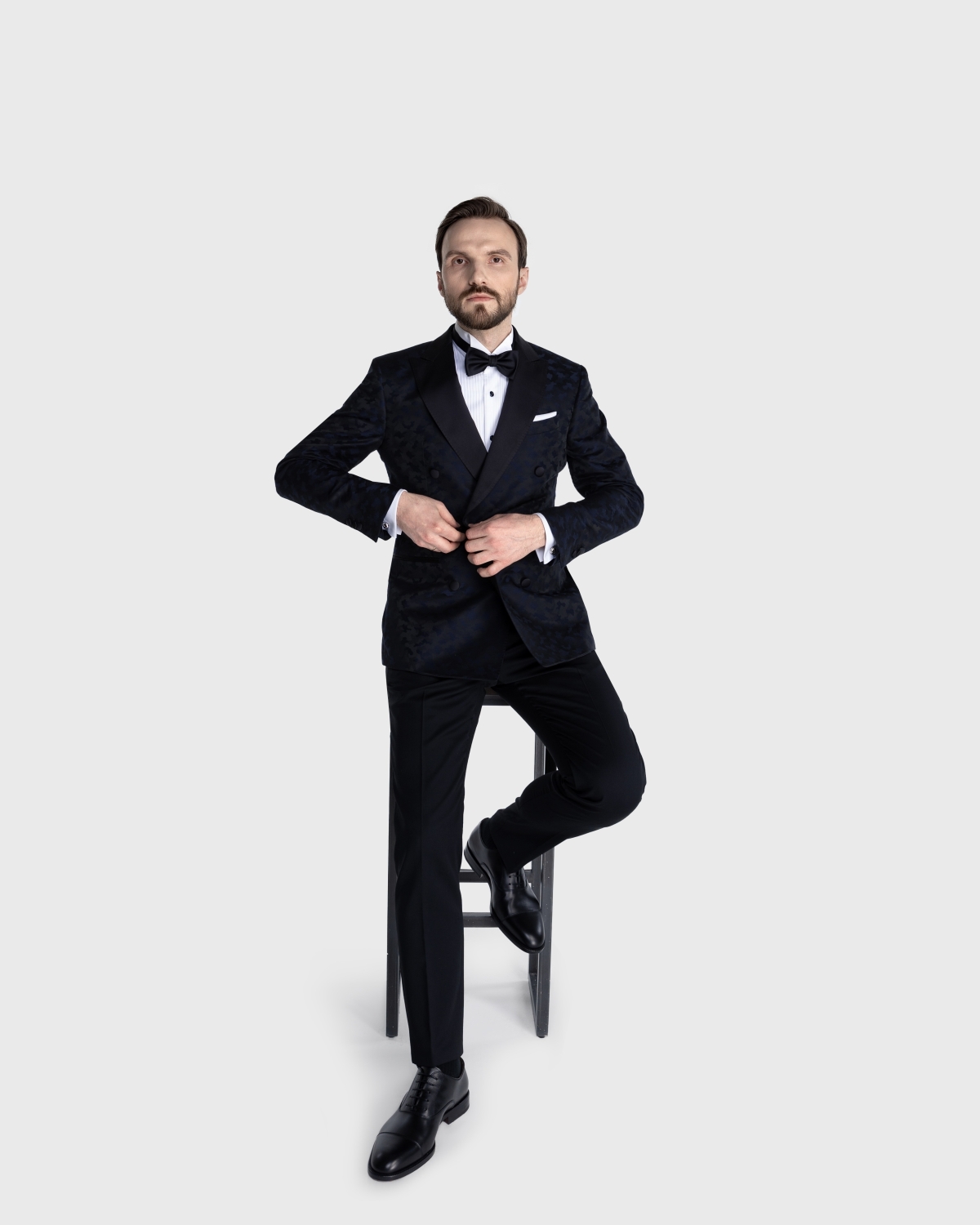 Работа ведется по технологии Made-to-Measure с элементами bespoke — это означает индивидуальную посадку, возможность корректировки силуэта и точную настройку костюма под фигуру, движения и съемку.
