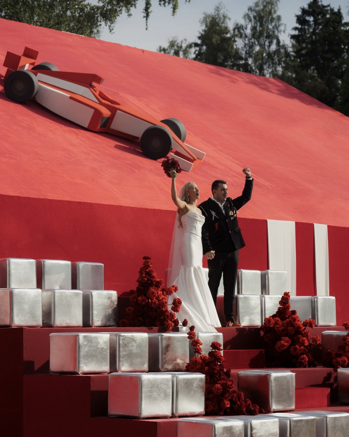 Честно? Нет. Мы, конечно, понимали, что свадьба получилась яркой и необычной, но не ожидали, что ее подхватят международные паблики — причем не только свадебные, но и автомобильные. Думаю, сыграло роль то, что за границей культ «Формулы-1» гораздо сильнее, и тема оказалась им близка.