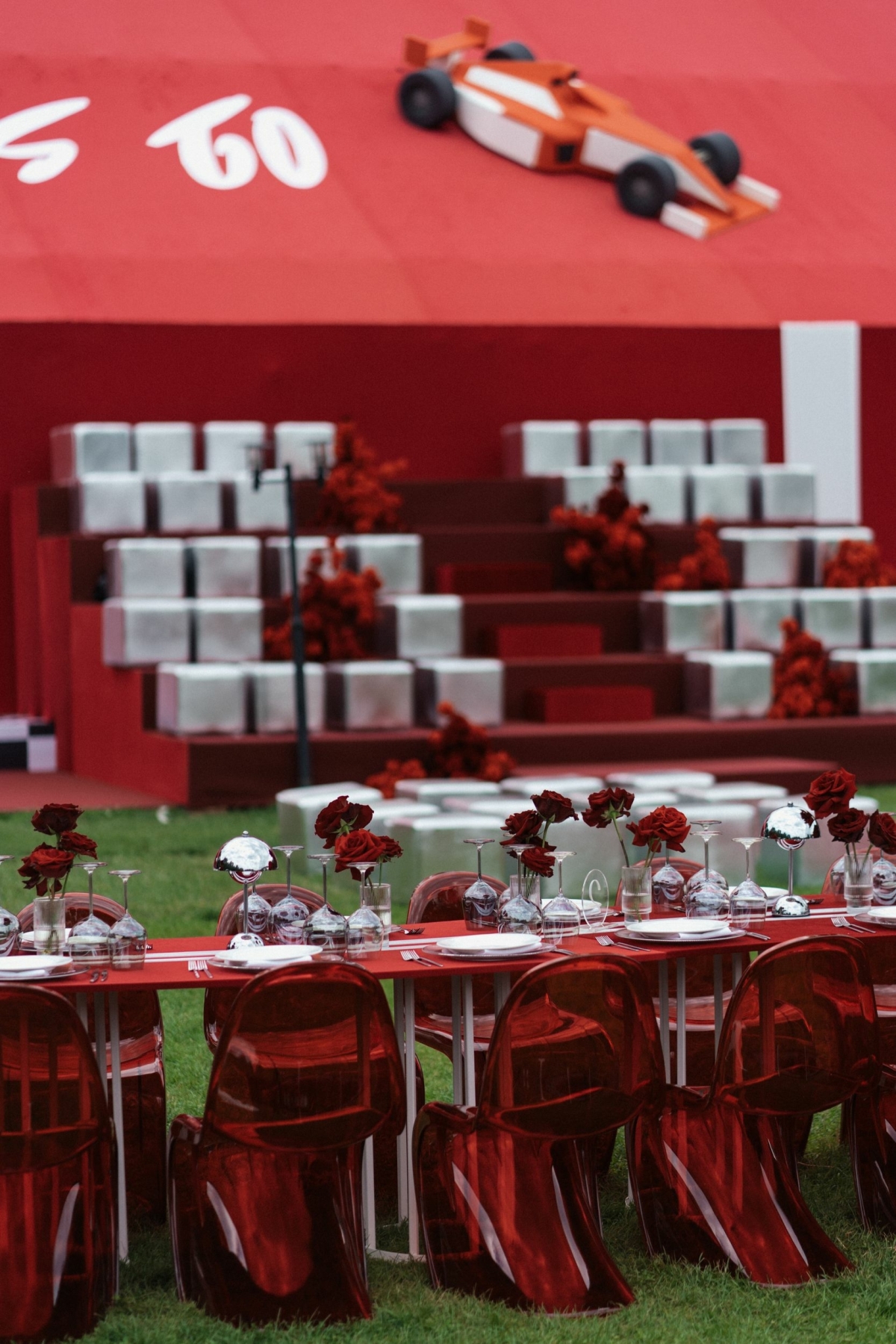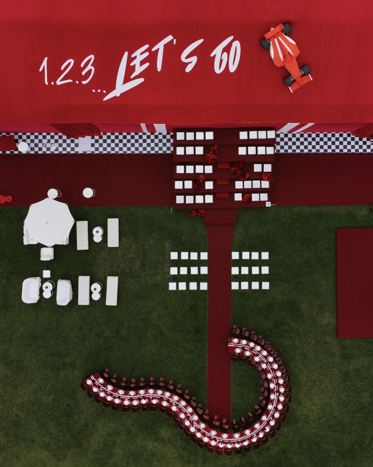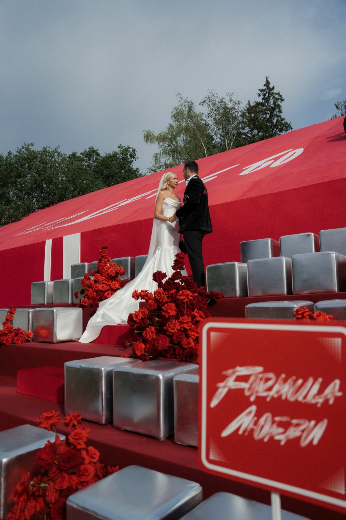 Вы наверняка видели этот проект — если не в свадебных пабликах, то в спортивных. Виталина и Никита праздновали свой день в эстетике «Формулы-1»: зона церемонии в стиле спортивных трибун, столы — гоночные трассы и фирменный красный. Мы поговорили с невестой о вдохновении и об истории любви, с которой все началось.
