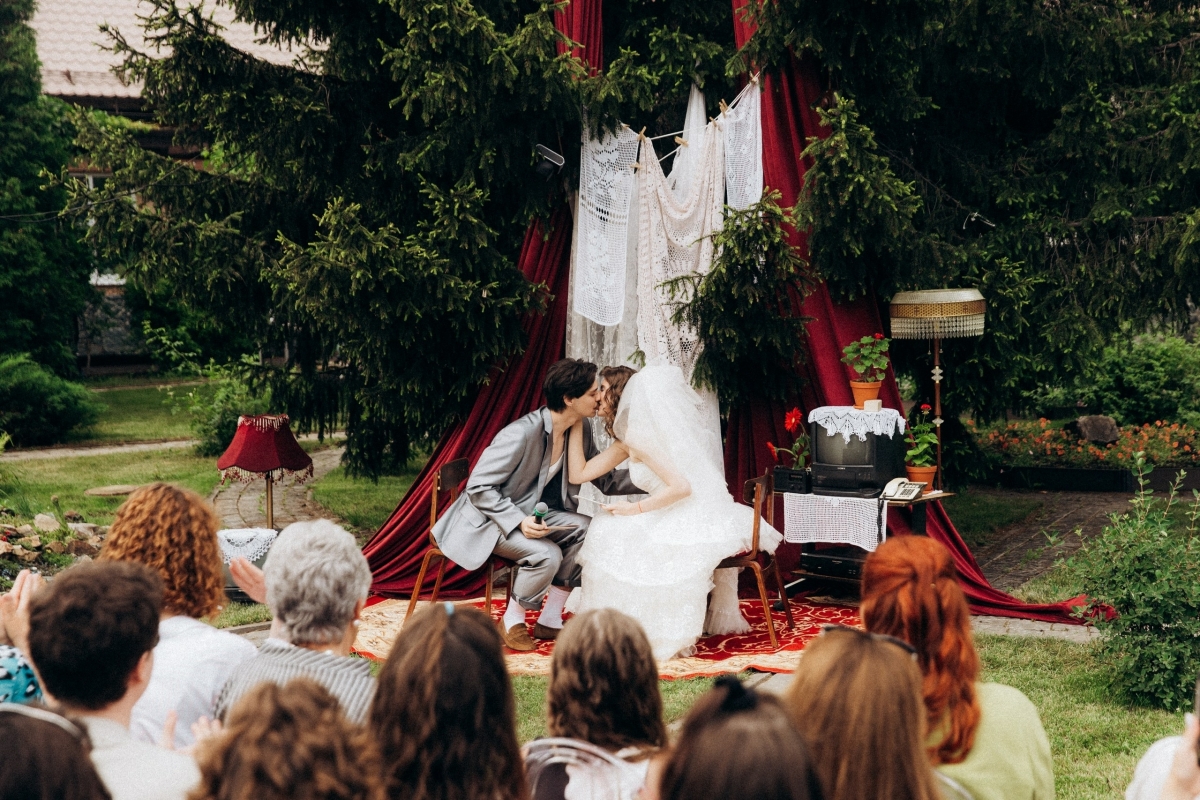 К тому же многие взрослые жили и женились именно в то время, когда такой формат — с конкурсами, тамадой и банкетом — был самым привычным. Мы хотели подарить им именно ту свадьбу, которая им близка.