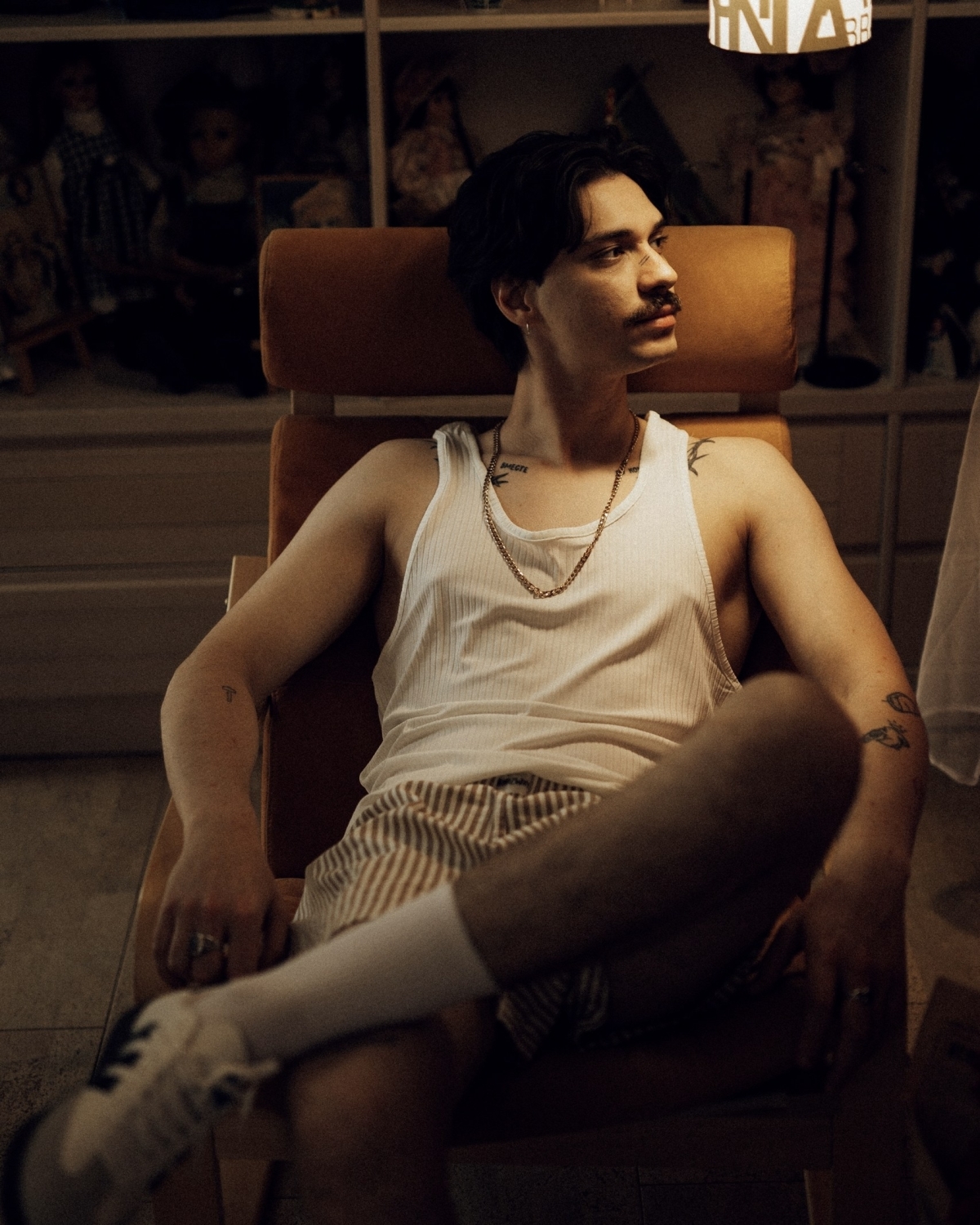 На Руслане был мятый костюм от дизайнера Саши Барбакова и кружевная футболка. Идеальный мэтч, как по мне.