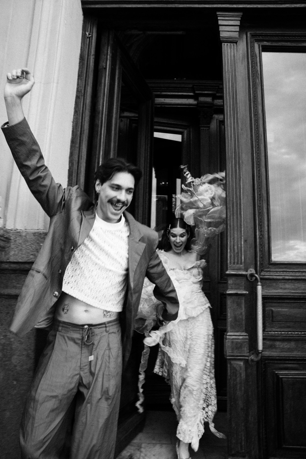 Все остальное в образе я подбирала под них. А за три дня до росписи выяснилось, что я осталась без платья. Я ревела полдня, потом взяла себя в руки и поехала искать другой вариант. В третьем месте — Creative Kontora — нашла идеальный костюм. Вместо букета у меня была бутафорская роза с человеческим лицом в «сердцевине». Это лицо удивительным образом сочеталось с «женихом и невестой» — каблучками на моих туфлях.