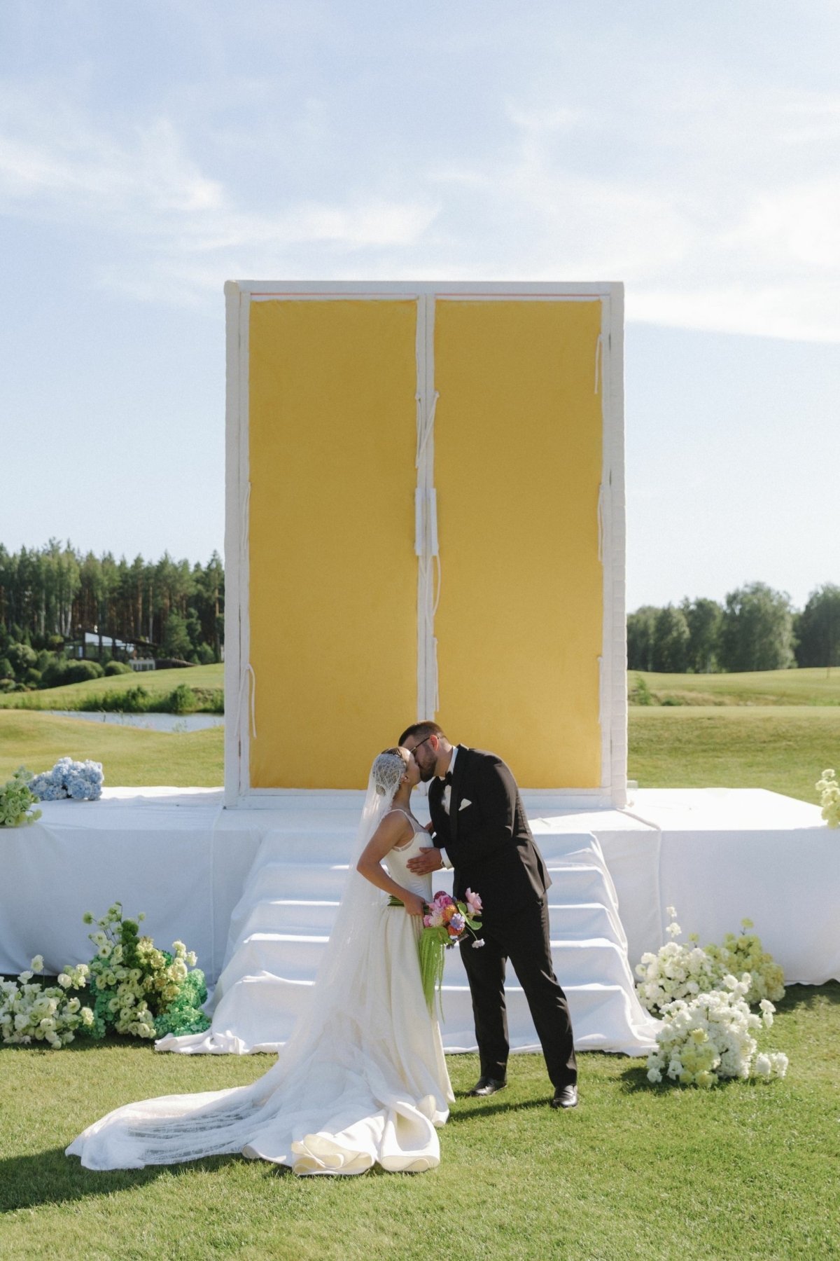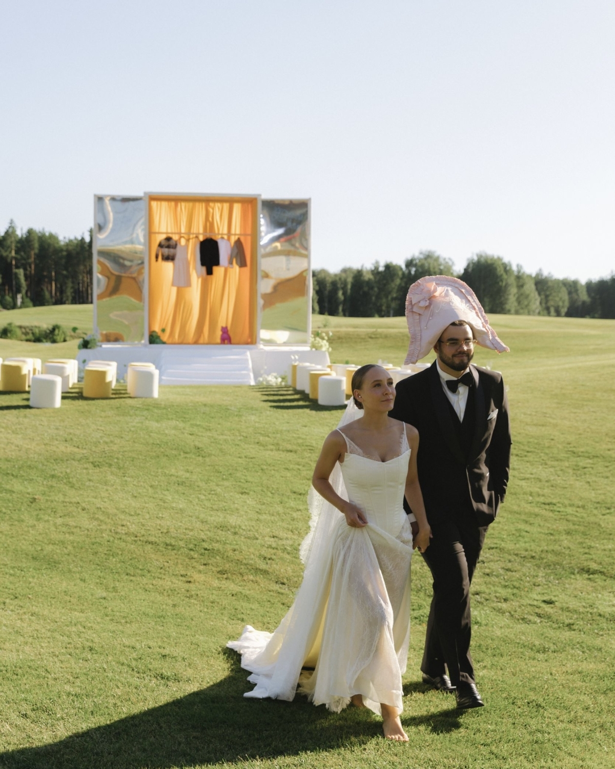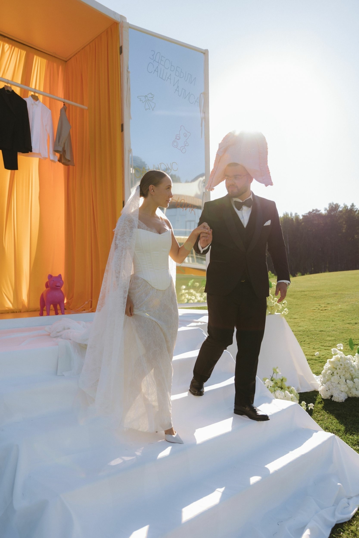 Эта свадьба как глоток теплого летнего воздуха: светлая, улыбчивая, очень живая и молодая по настроению. За организацией стояла команда Bonweddings, которая в своем характерном креативном подходе сделала метафорой отношений Алисы и Саши шкаф — он оказался в центре церемонии и всего визуального рассказа этого дня. Почему именно шкаф, какие смыслы в нем спрятаны и что еще было заложено в концепцию свадьбы, невеста рассказала нам в интервью.