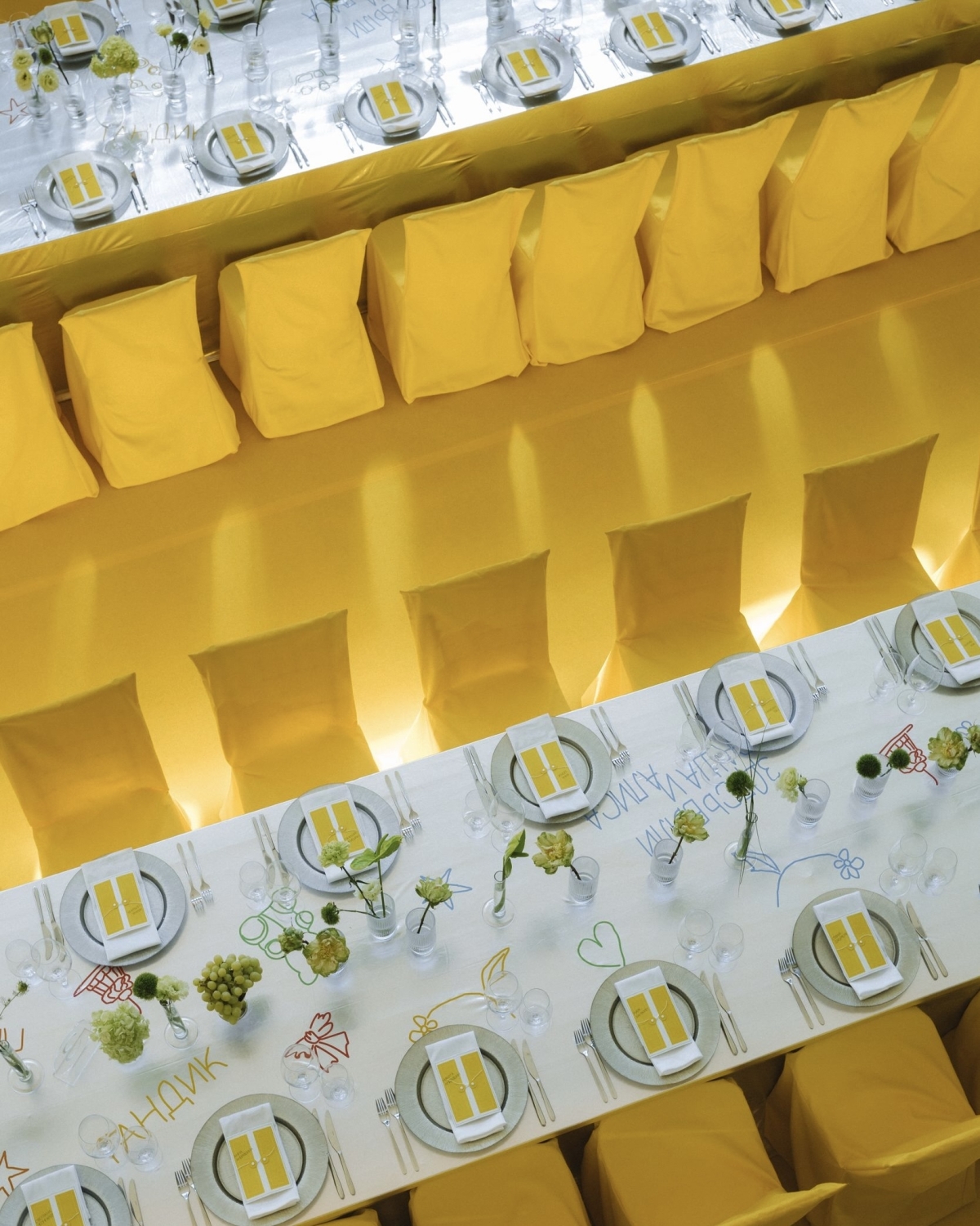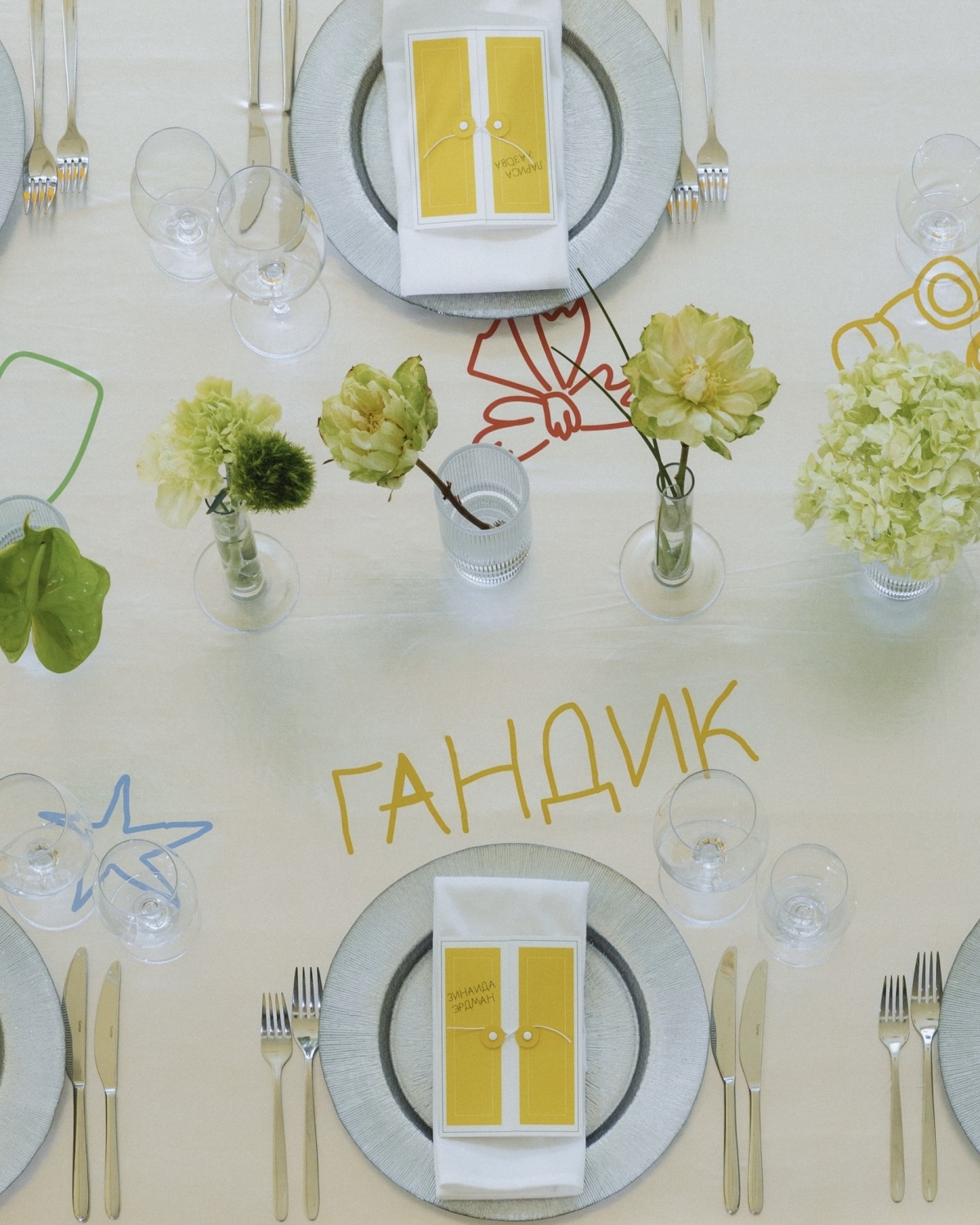 Нас было 85 человек. Дресс-код мы выбрали очень непростой: блестки, акцентные детали, яркие цвета и рюши. Когда гости задавали уточняющие вопросы, я не раз тревожилась: «Может, мы сделали неправильный выбор? Может, стоило просить мужчин надеть смокинг, а девушек — пастельные коктейльные платья?» Но в итоге наряды гостей стали одной из самых запоминающихся деталей. Нетипичные референсы мотивировали друзей и родных продумать образ заранее — своеобразный сайд-квест. Неповторимое чувство: все трепетно праздновали жизнь и любовь вместе с нами, и это читалось в каждом каблучке и запонке.