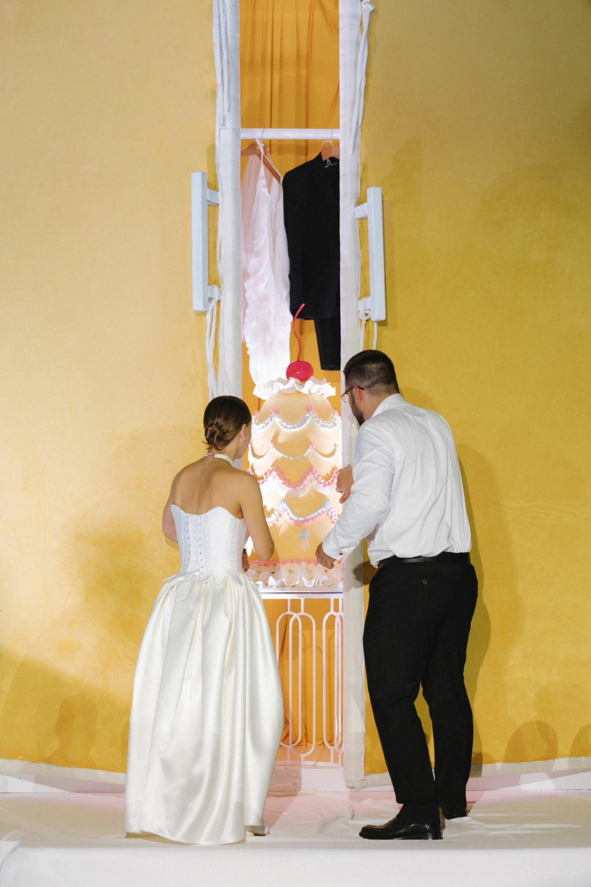 На церемонии у вас была необычная зона — в форме шкафа с зеркалами, надписями и личными предметами. Как родилась эта идея и какие смыслы вы хотели в нее заложить?