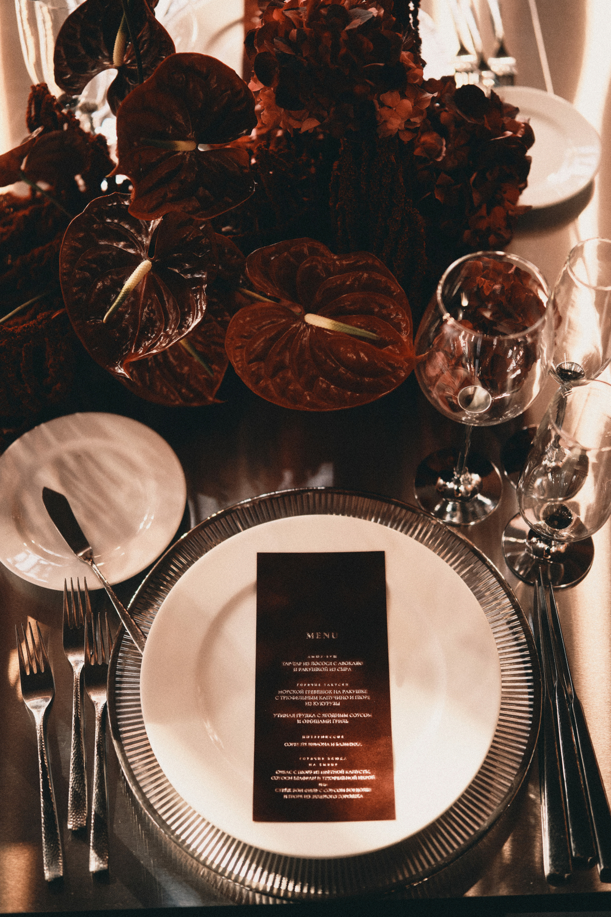 Я всегда тяготела к готической эстетике в моде, искусстве и кино. Даже не представляла для себя белую минималистичную свадьбу или банкет в пастельных тонах. Мне хотелось создать атмосферу таинственности, пронизанную историей, но при этом не уходить в вычурную театральность тематических мероприятий. Это не про сказку и романтику, а про красоту и эстетическое наслаждение.