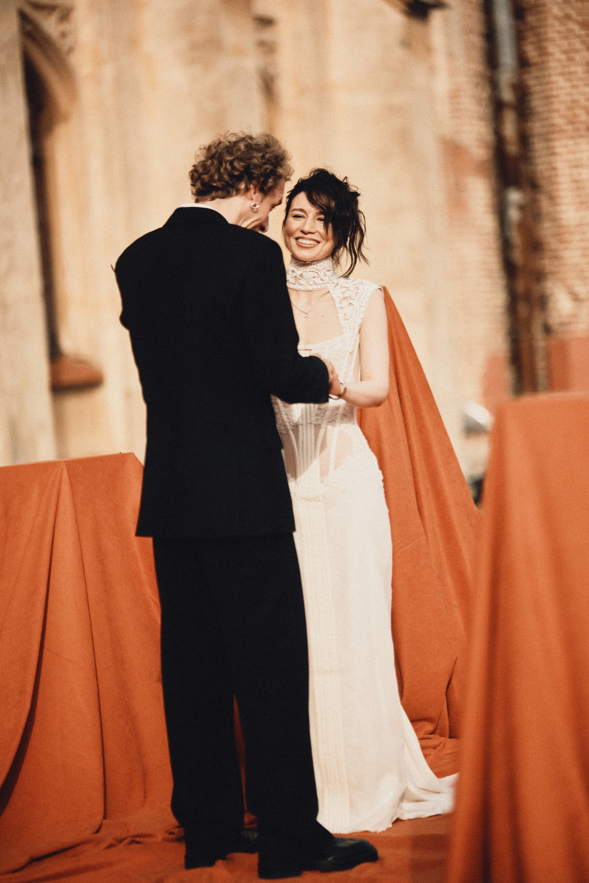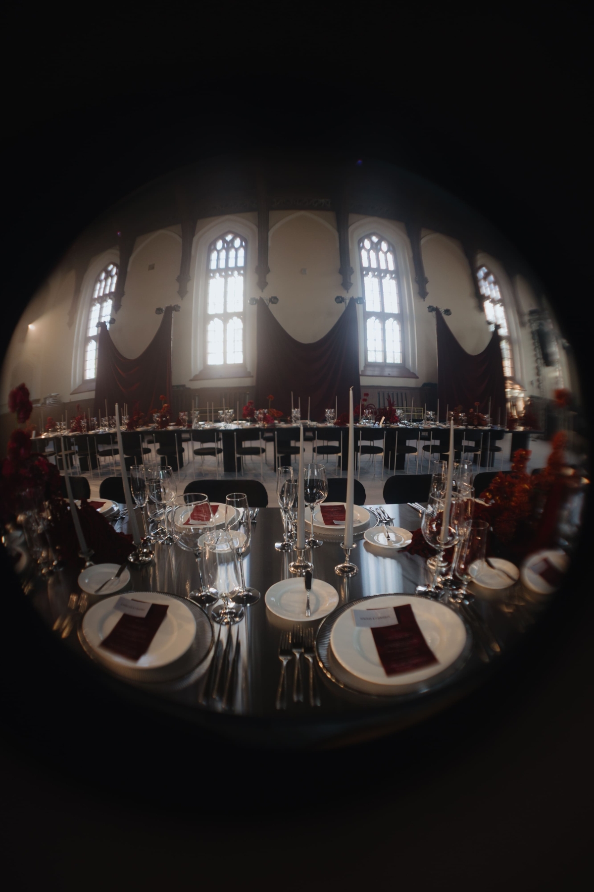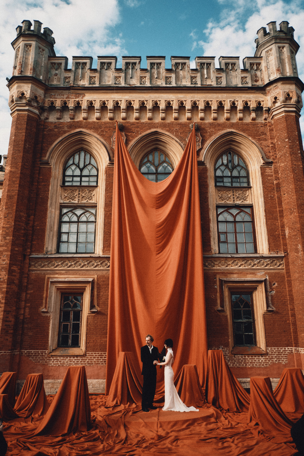 Еще на этапе сбора референсов мы решили, что не хотим проводить свадьбу в отелях и ресторанах. Нам была важна новая, не избитая свадебными торжествами площадка. Мы сформулировали для организаторов запрос на поиск пространства с глубокой историей и по возможности с архитектурой в готическом направлении. Хотелось, чтобы событие смотрелось целостно, а сама площадка стала логичным продолжением концепции и декора. Мы заранее понимали, что именно готический стиль близок нам для этого праздника.