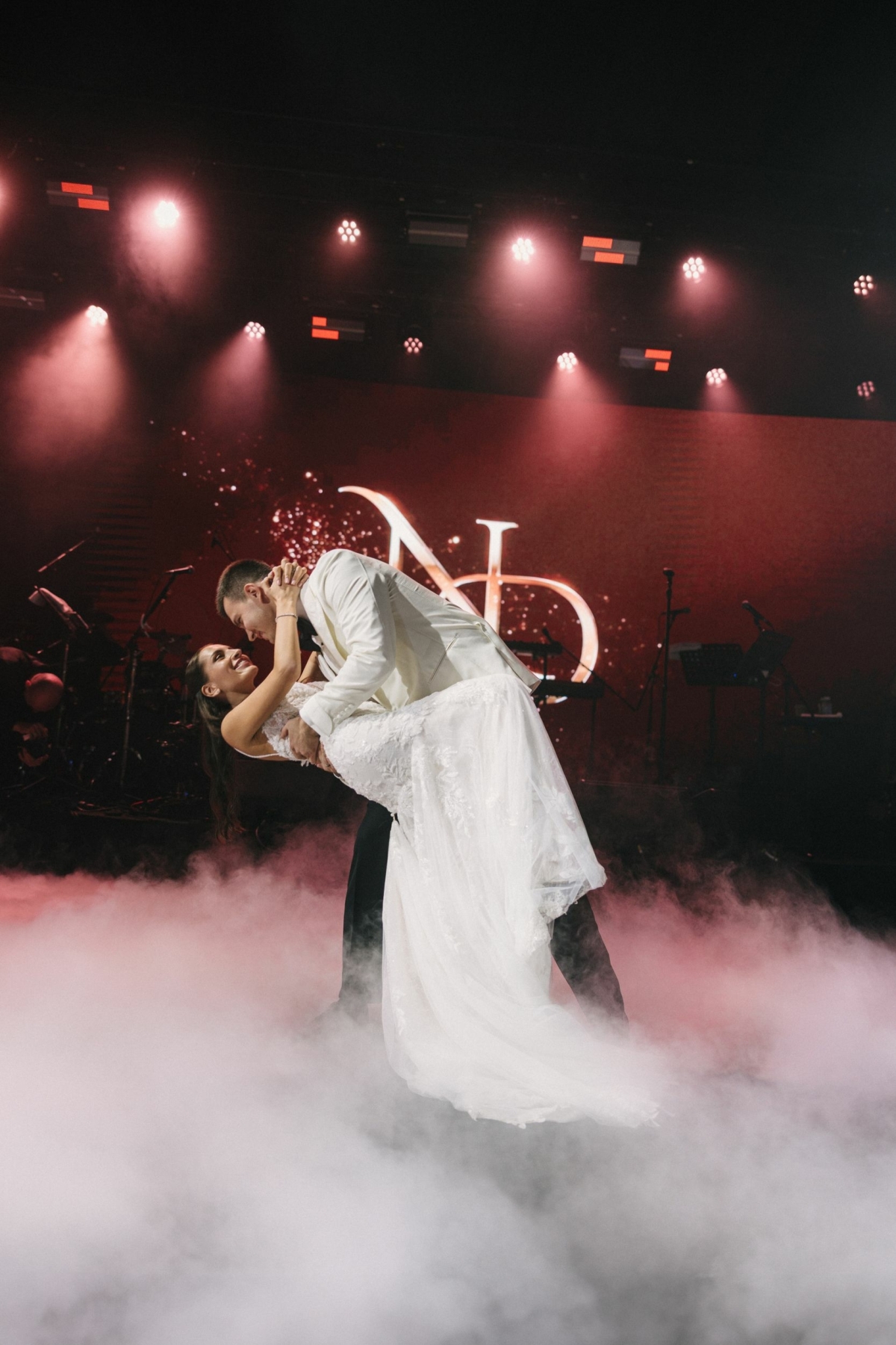Да, первый танец был под песню Ланы Дель Рей West Coast. Мы готовились и много репетировали, но ни разу — в свадебном платье. В результате по ходу танца я запуталась в юбке и порвала ее. Так что совет всем невестам: репетируйте в платьях! Хотя большинство гостей даже не заметило, что что-то пошло не так.